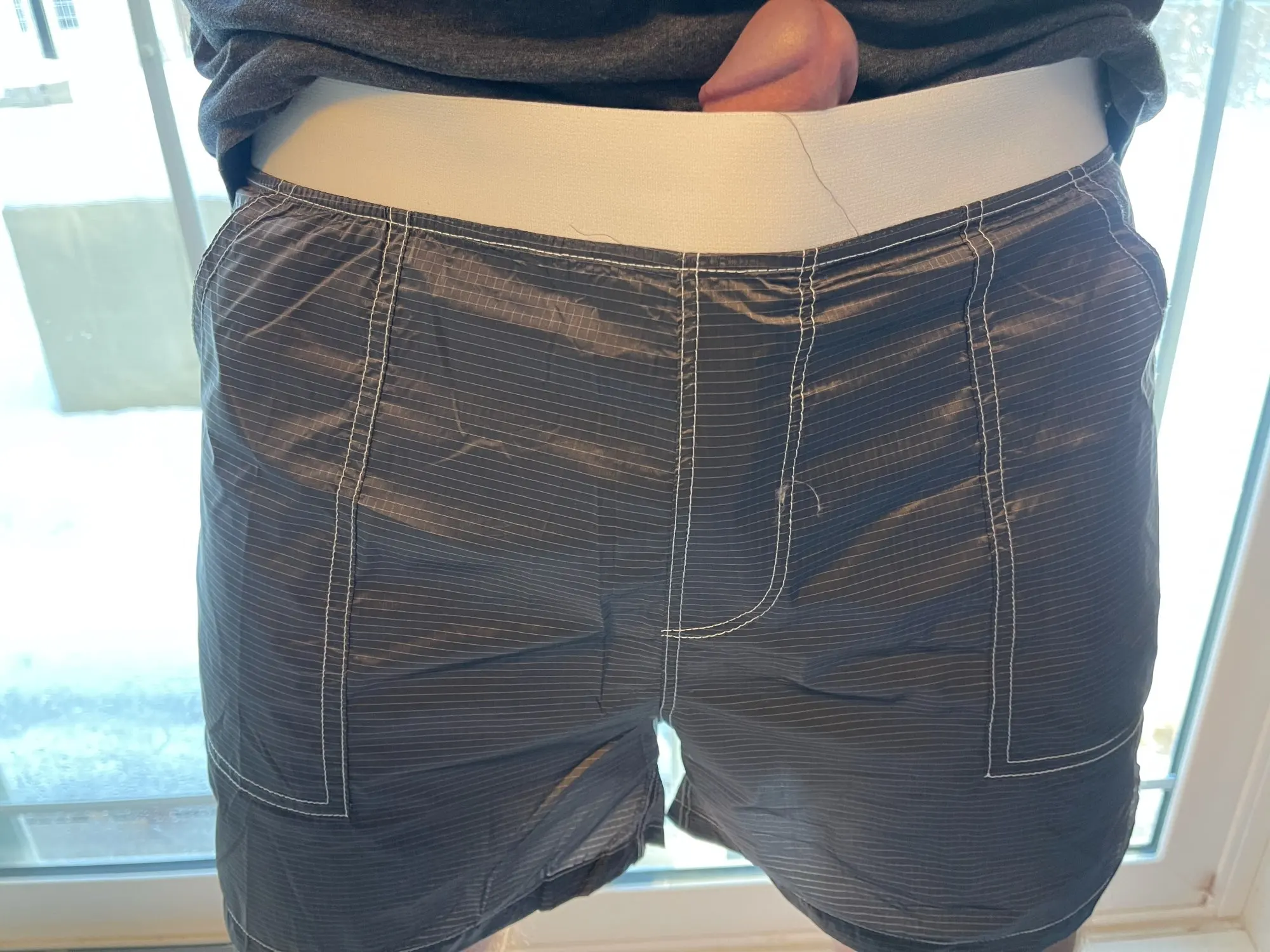 В этих шортах нет шнурка, поэтому я немного беспокоюсь о том, что они опускаются в бассейн. Не знаю, насколько прозрачные они будут в воде, но вышлем фотографию, если я забуду, и они позволят мне добавить дополнительный отзыв. Хороший материал и хорошая длина. В целом доволен.