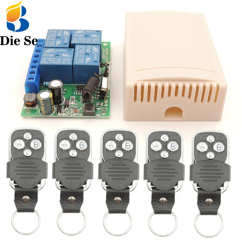 Универсальный беспроводной пульт дистанционного управления RF, 110 В переменного тока, 220 В, 10 ампер, 2200 Вт, 4 канала, 433 МГц, модуль релейного приемника, контроллер для открывания ворот гаража