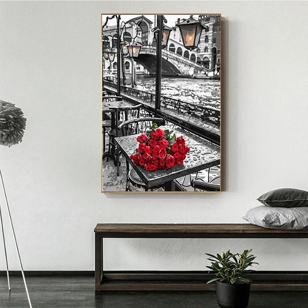 Набор для рисования по номерам на холсте Роза, с красным и черным пейзажем