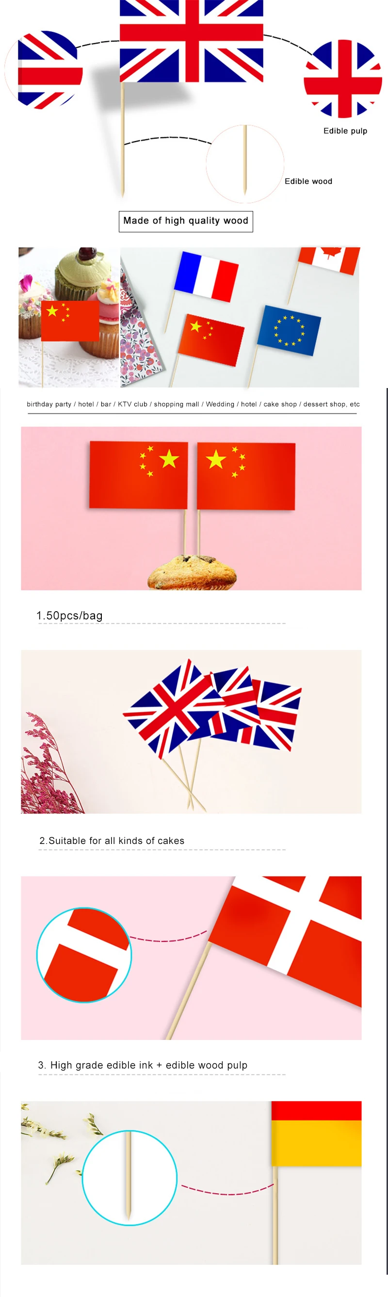 50 шт одноразовые мульти Национальный флаг палка торт toper флаг Фруктовые палочки для торта, стейк из зубочистки пищевые украшения бар
