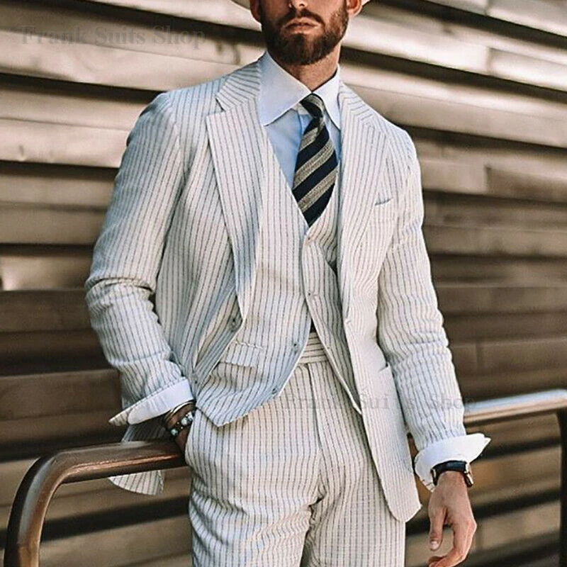 Мужской Комплект из трех предметов, белый полосатый пиджак, свадебный костюм