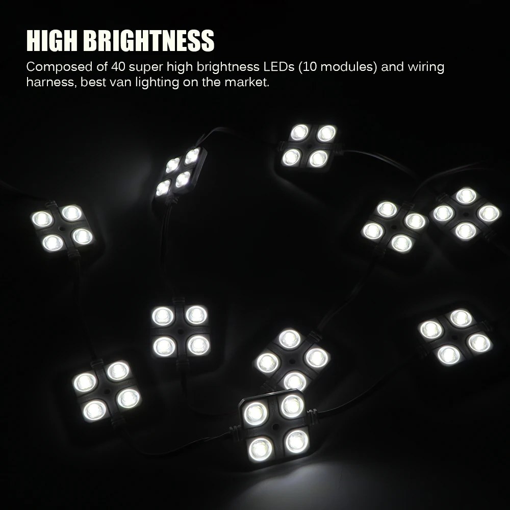 Состоит из 40 светодиодов супер высокой яркости (10 модулей) и жгута проводов, лучшего освещения на рынке.