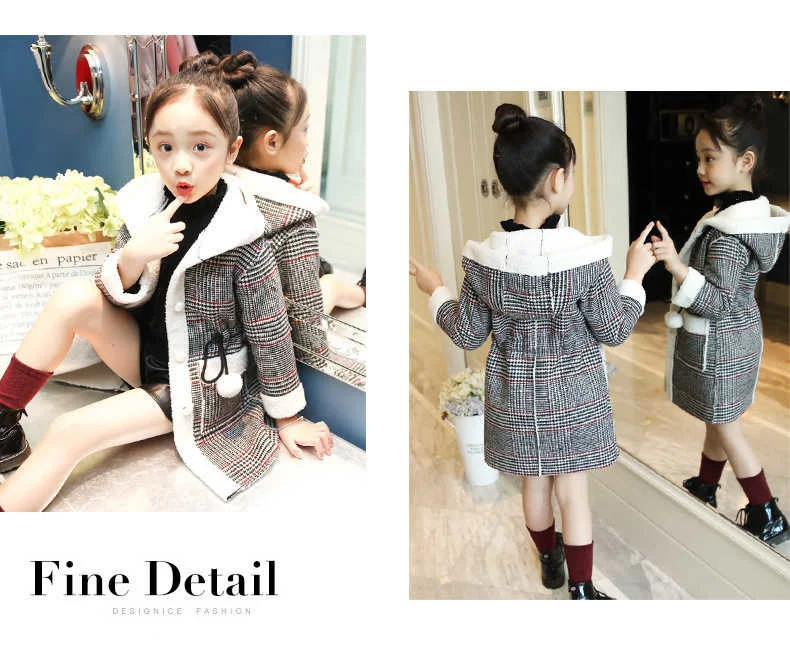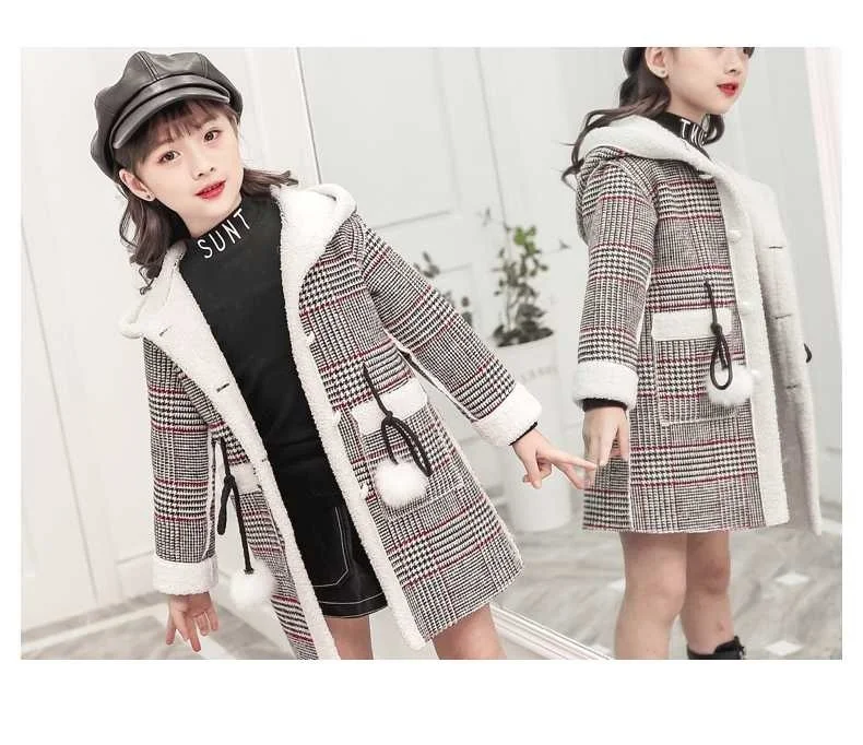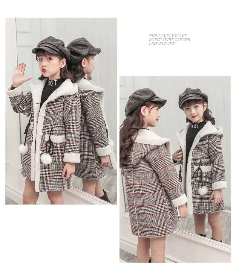Парка детская шерстяная, Осень-зима, с подкладкой и сетчатым узором, длинная, 2021