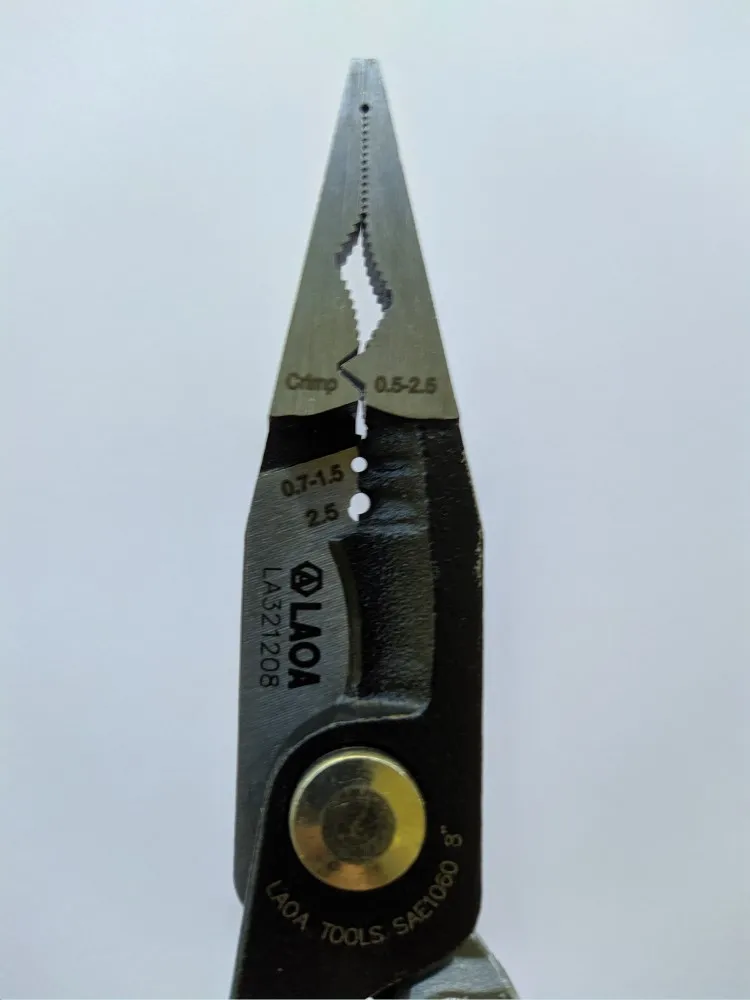 Получил быстро, слишком плохо, что инструмент является дефектом. Кнопка блокировки, не останавливает откручивание, есть риск потери его постоянно во время работы. И есть небольшая игра в сборке полученного зажима, которая приводит к аномальному износу трения, которое можно увидеть на прилагаемой фотографии. Для остального плоскогубцы очень хорошо режут, и голая очень хорошо, приятно использовать. Остается в использовании.