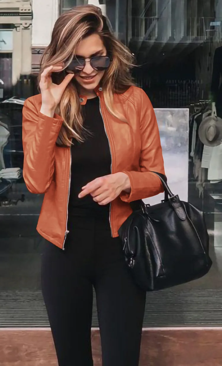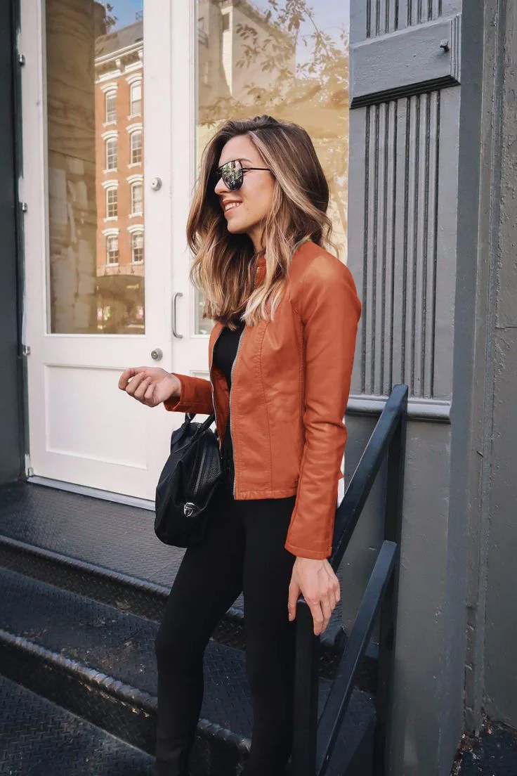Женская короткая куртка из ПУ кожи, с воротником-стойкой