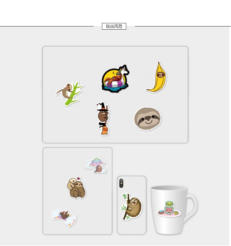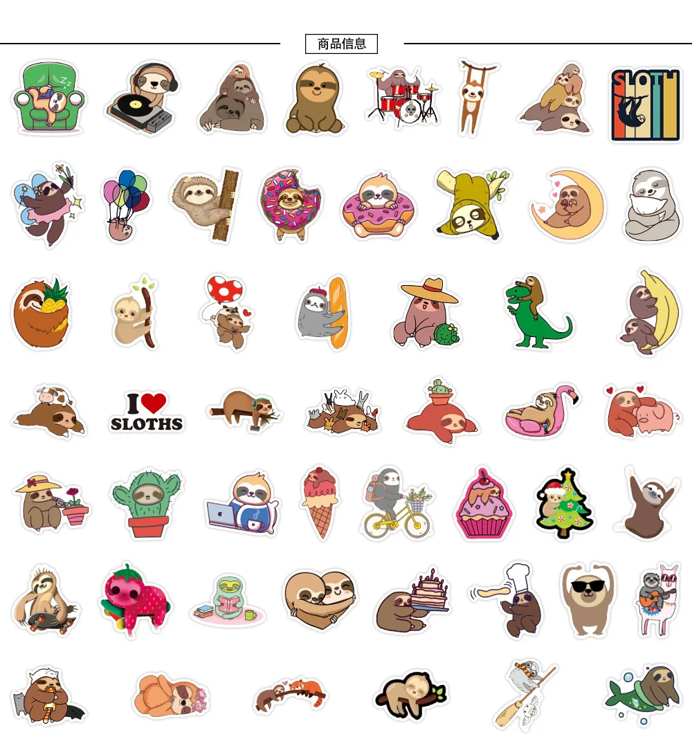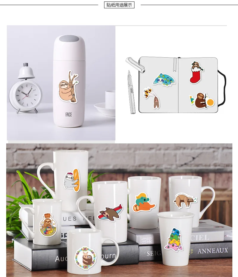 WG55 милые животное Ленивец наклейки для ноутбука, расслабляющая жизнь, Забавный мультяшный текст, водостойкие для детей, сделай сам, гитара, наклейка на холодильник, автомобиль