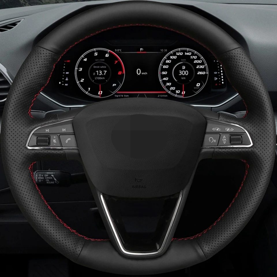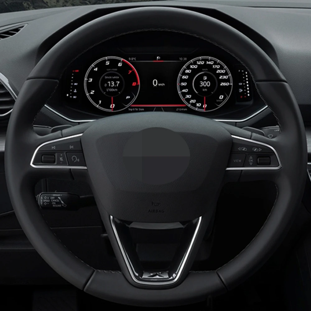 Чехол рулевого колеса автомобиля сделай сам, черная искусственная кожа для Seat Leon 5F Mk3 2013-2019, Ibiza 6J, Tarraco Arona Ateca Alhambra