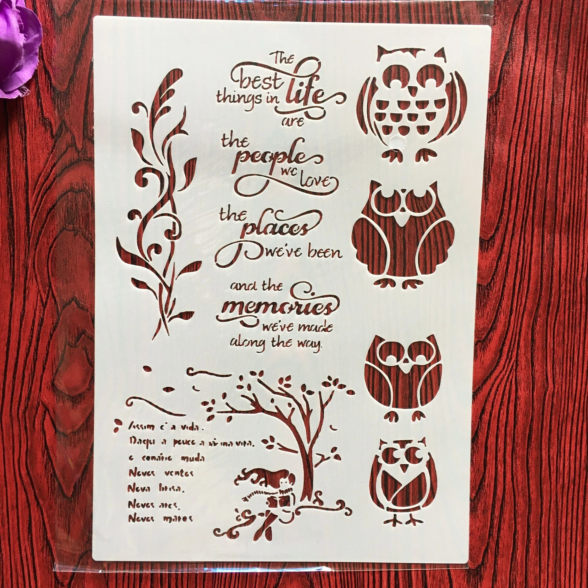 Трафареты для рисования стен, A4, 29 х21 см, сова, раскраска для скрапбукинга, рельефная декоративная альбомная бумага