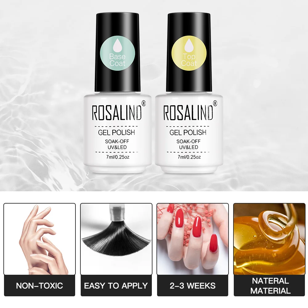 ROSALIND 7 мл базовый верхний гель для фотогеля Набор лаков для ногтей Полуперманентная основа для ногтей УФ светодиодный Гель-лак без протирания
