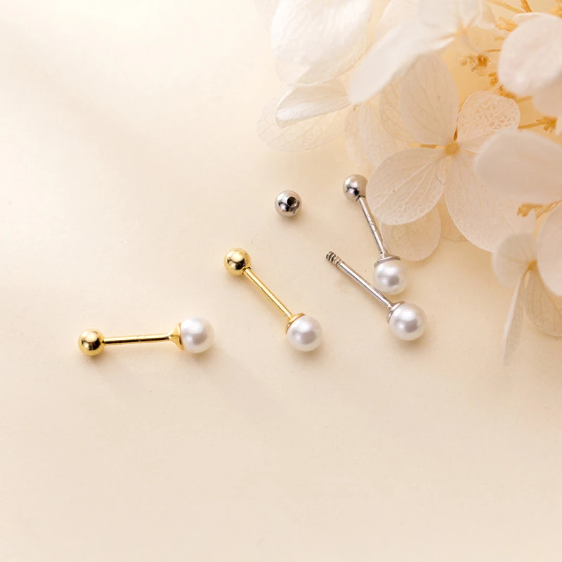 Женские маленькие серьги-гвоздики WANTME, круглая жемчужная бусина ...