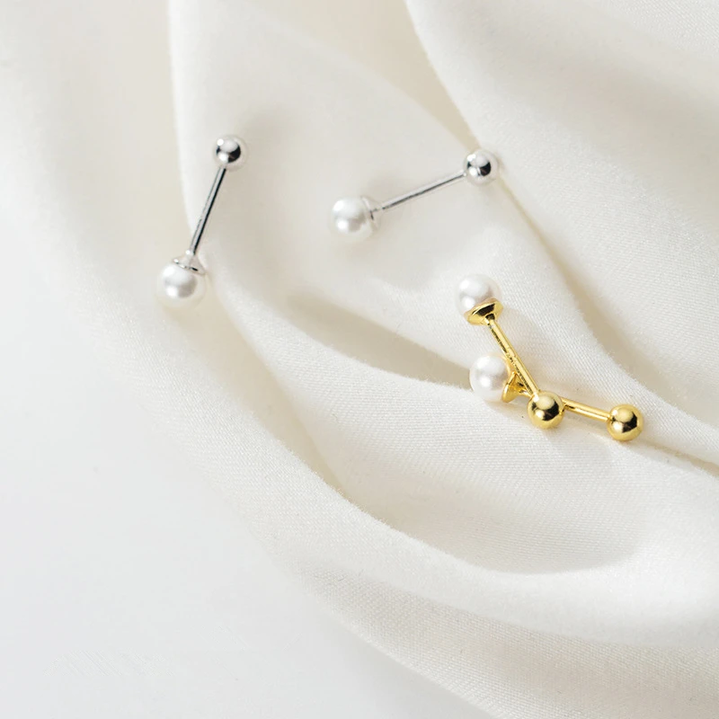 Женские серьги-гвоздики из серебра 925 пробы, с жемчугом