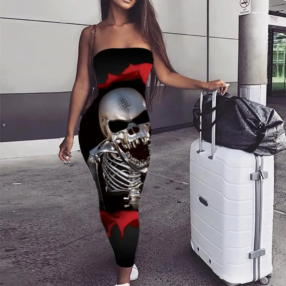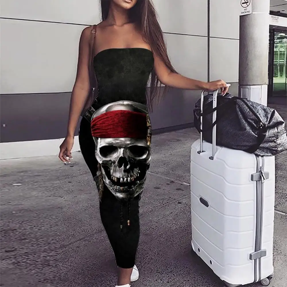 Платье KYKU женское в стиле панк, с черепом, бохо, с 3D-принтом, с кисточками, без рукавов