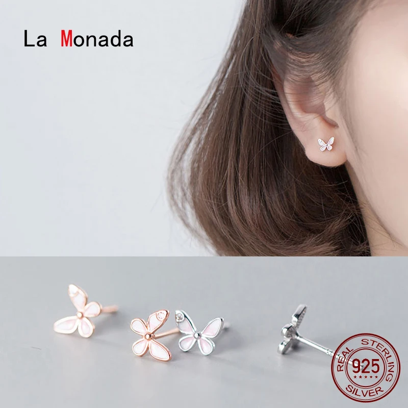 Ла Monada 925 стерлинговые серебряные серьги в виде бабочек маленькие серьги-гвоздики, серьги для женщин, серебро 925 ювелирные украшения в виде бабочки вокруг шеи отличное женское ожерелье серьги