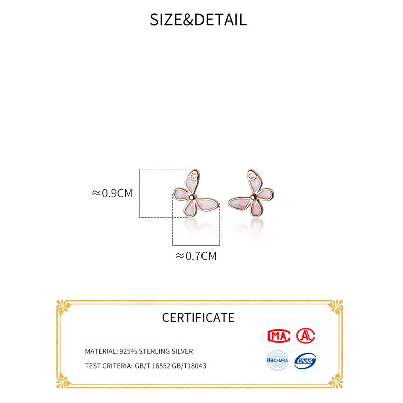Женские серьги-гвоздики с розовой бабочкой WANTME, 100% Стерлингово...