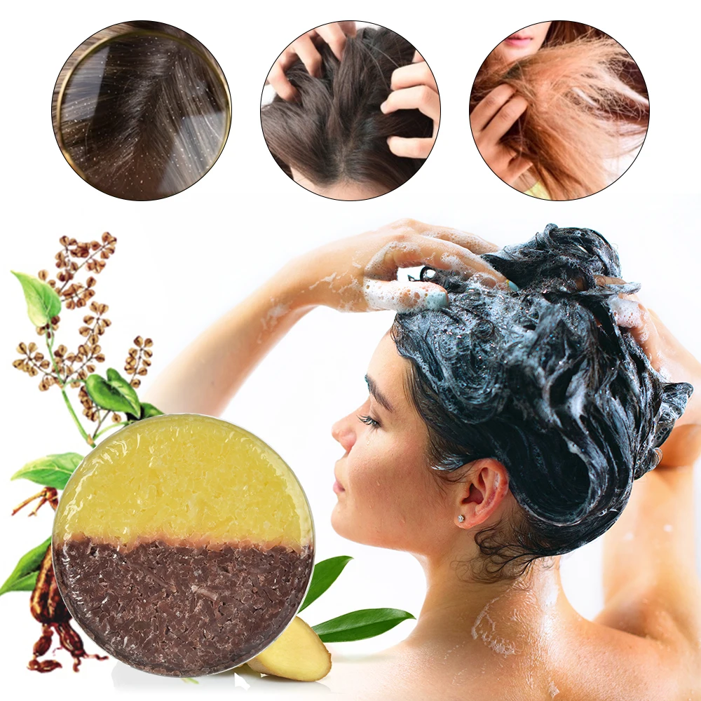 100% натуральный имбирный шампунь для волос, мыло, чистый Растительный шампунь для улучшения качества корней волос, увлажняющее мыло для волос, уход за волосами