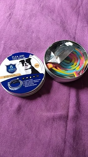 очень милый ошейник, чем-то пахнет, не сильно, моему собачуле нравится