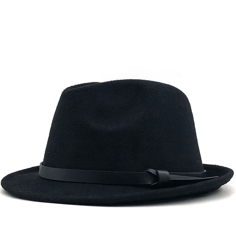 Новая зимняя белая мужская джазовая шапка джентльмена Федора шерстяная Мужская классическая узкая лента джазовая шапка Регулируемая верхняя шапка
