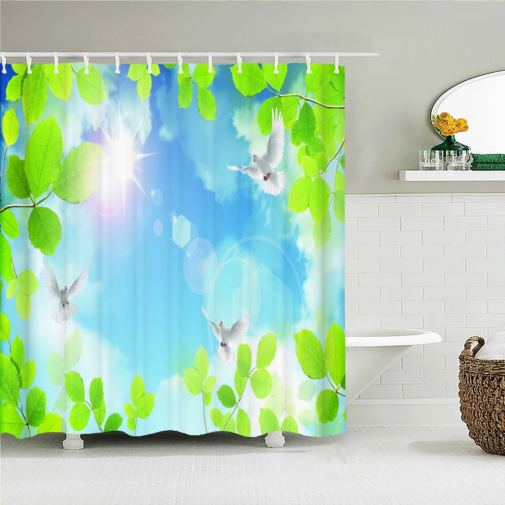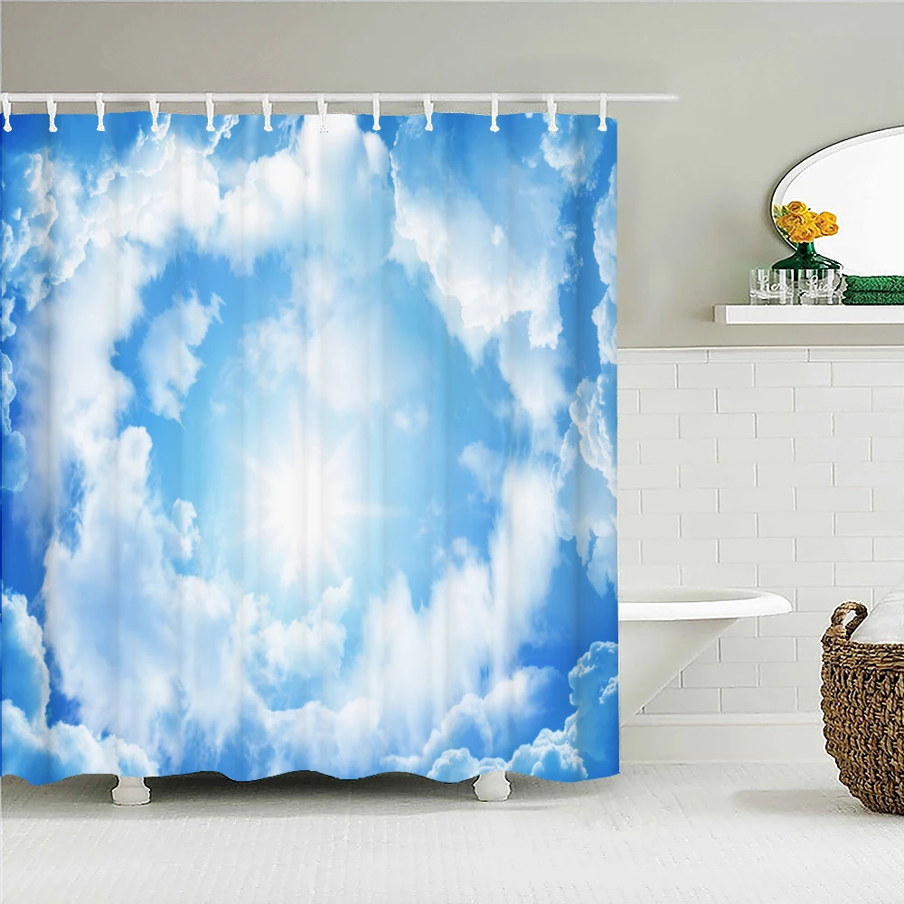 Голубое небо пейзаж с облаками занавеска для душа Водонепроницаемая занавеска с крючками для ванной комнаты занавеска с крючками занавеска для ванной s Ткань 3d печать 180*200 см занавеска