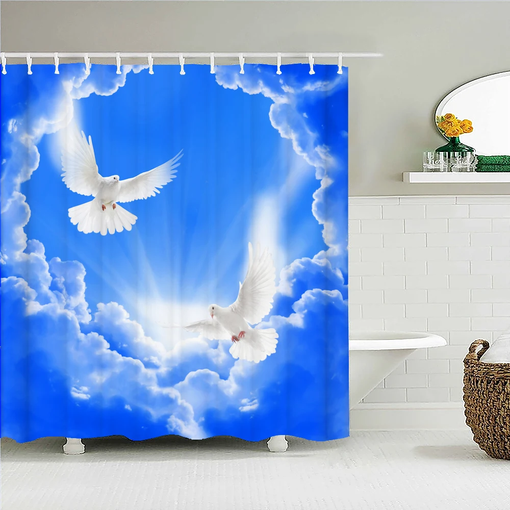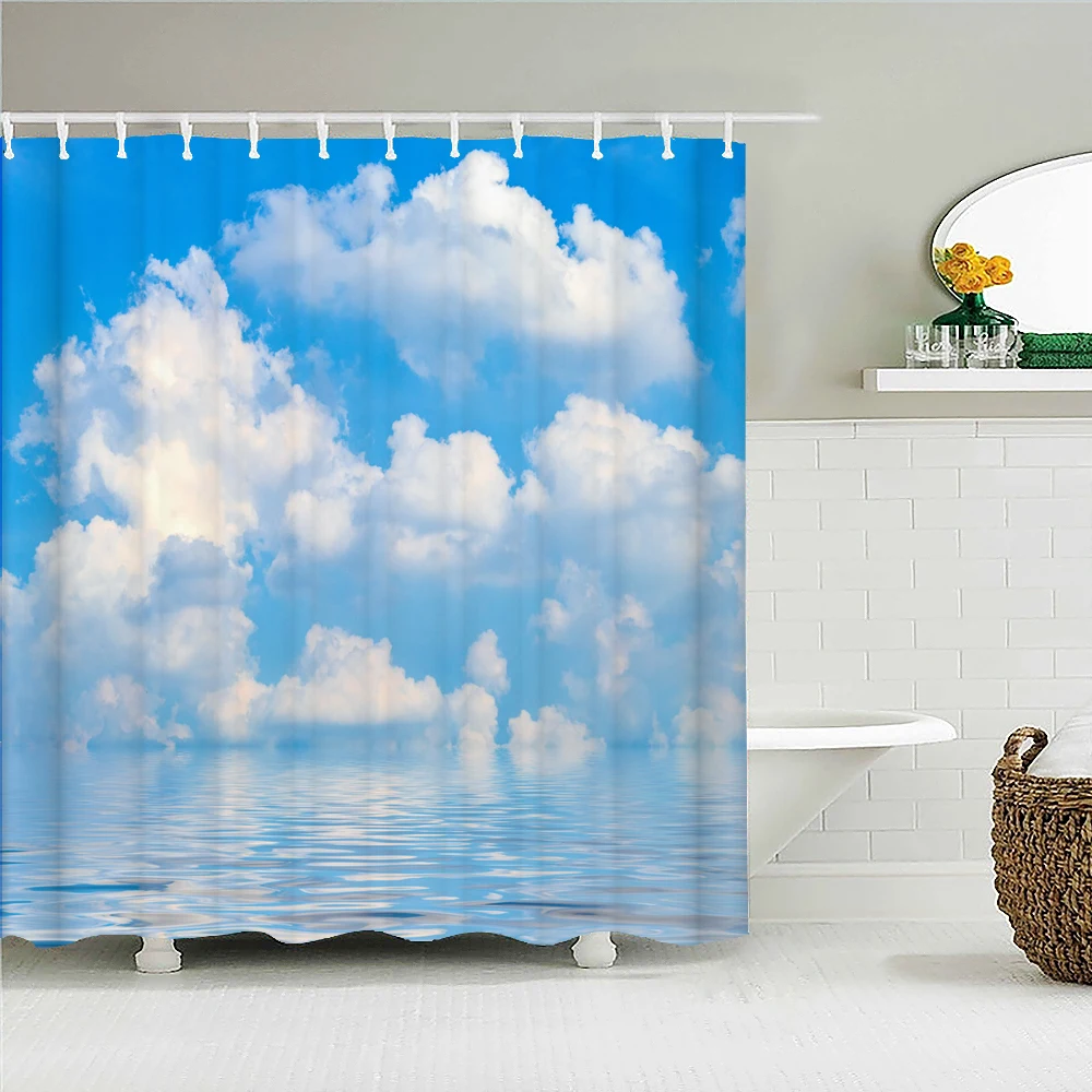 Занавеска для душа, водонепроницаемая, с крючками, пейзаж с облаками х занавеска с крючками для ванной комнаты см, 180 х 200 см