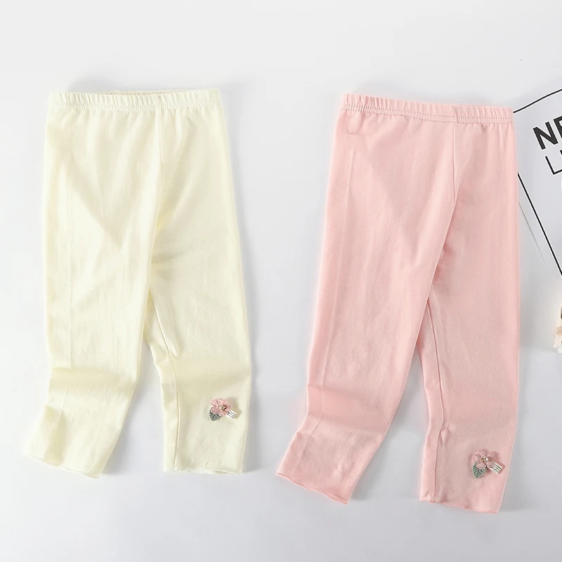 Леггинсы для девочек, однотонные, с цветочным принтом, весна-осень