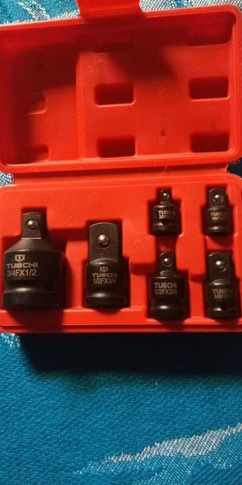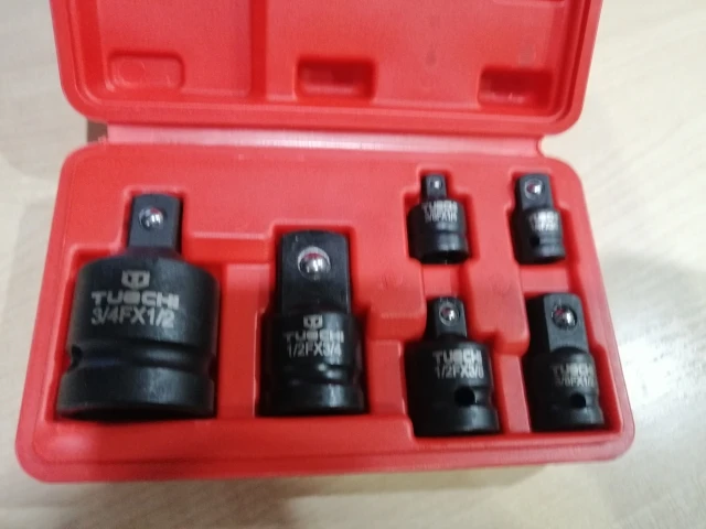 удобный кейс, выглядит надежно, но пока не пробовал в работе, единственно у нас не распростанены 3/8" , да и 3/4" получаются без надобности. Не нравится, что нет сразу переходника с 1/2 на 1/4 и наоборот, приходиться задействовать через 3/8.