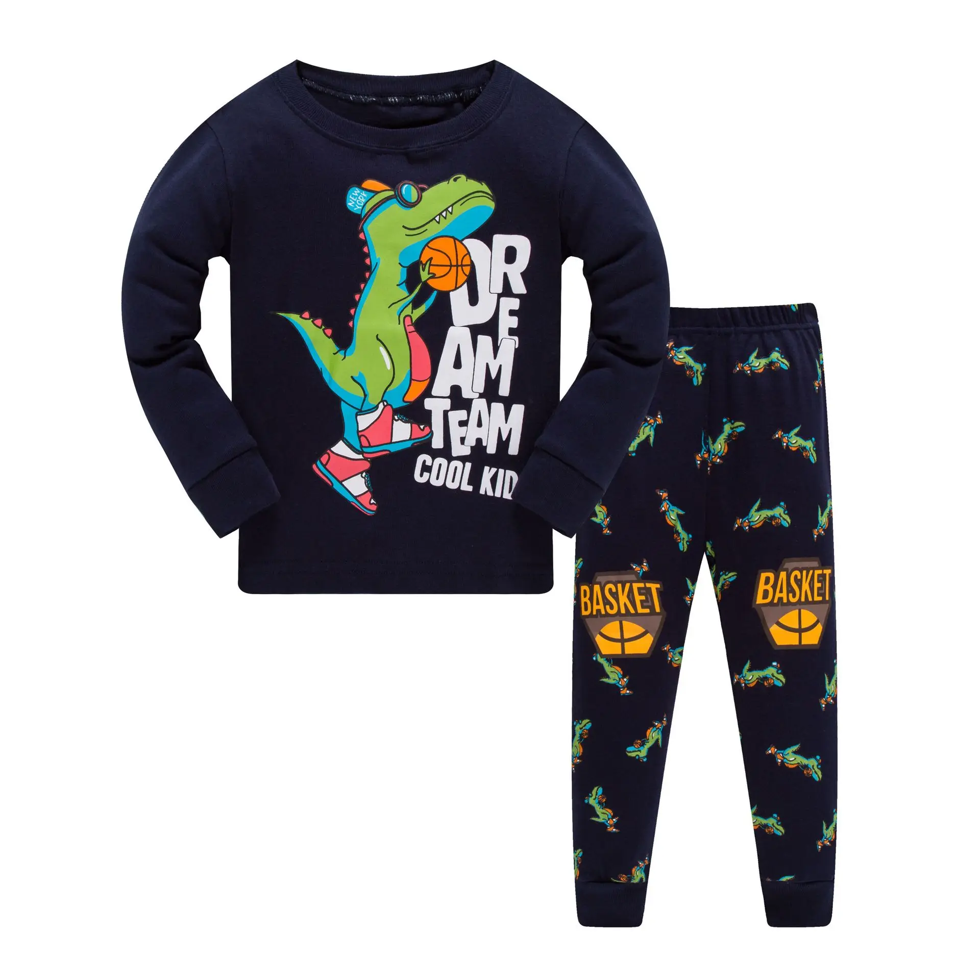 Домашняя одежда с изображением динозавра на осень и весну, одежда для мальчиков и малышей, топ с мультяшным рисунком + штаны, пижамы, комплекты одежды для сна