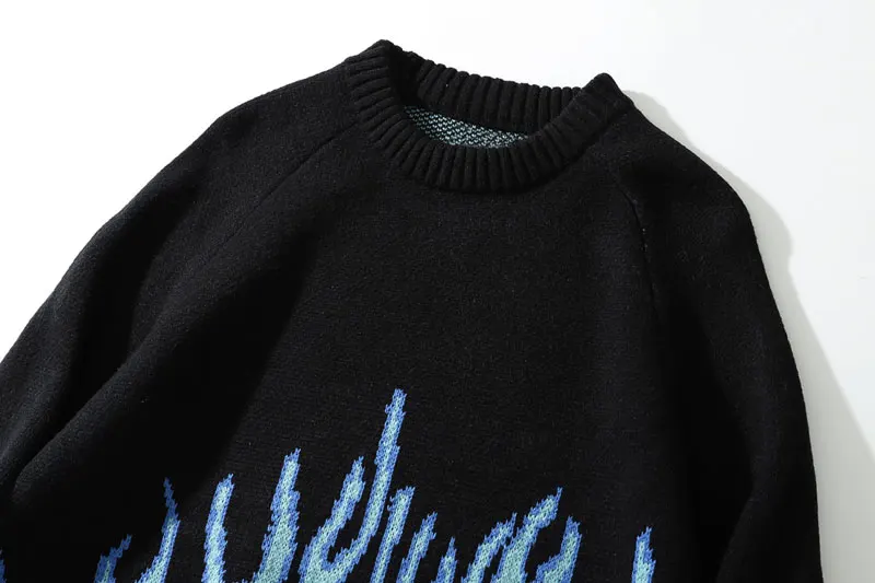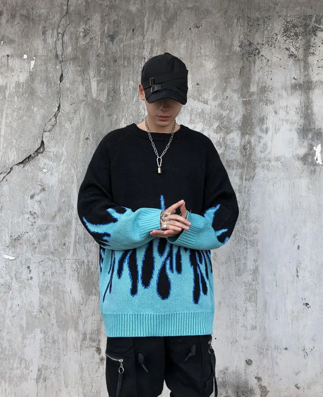 Свитер вязаный GONTHWID, в стиле хип-хоп, с огненным пламенем, в стиле Харадзюку, уличная одежда, 2020