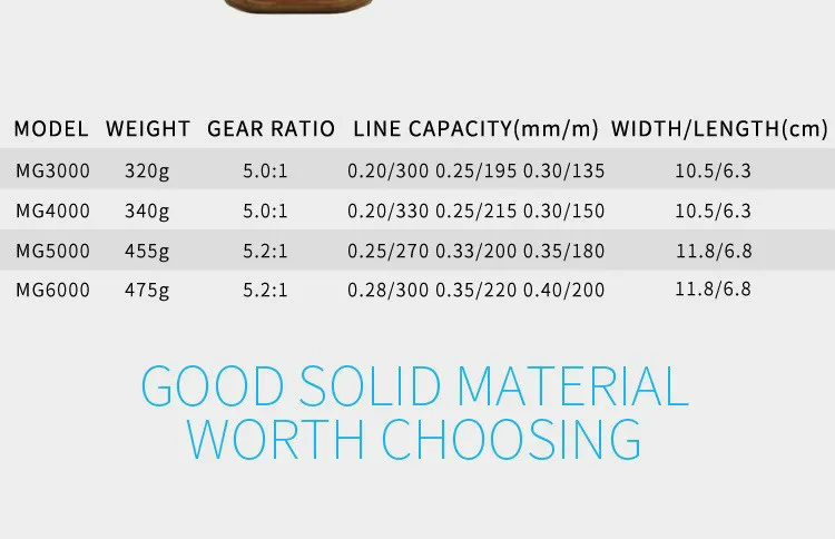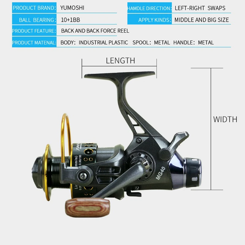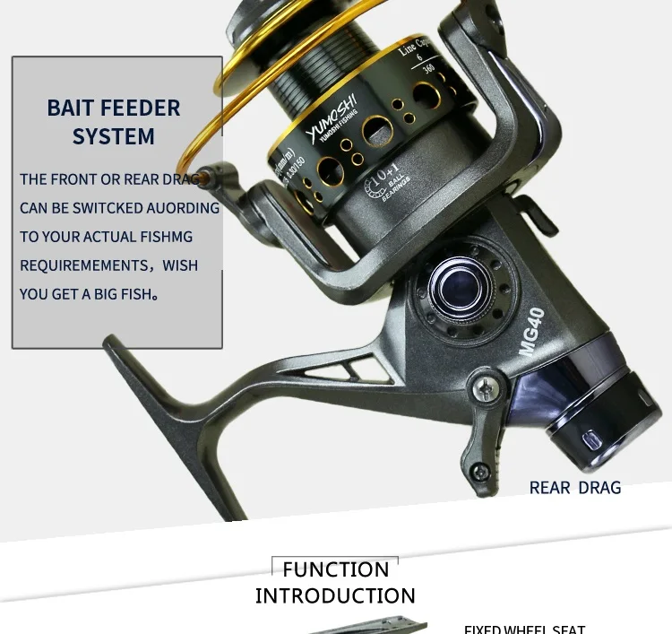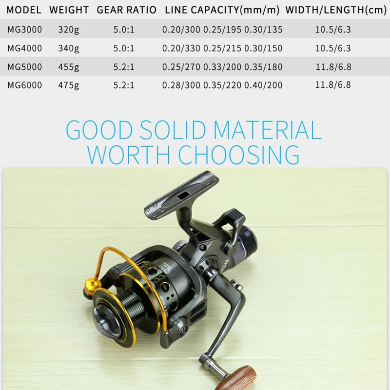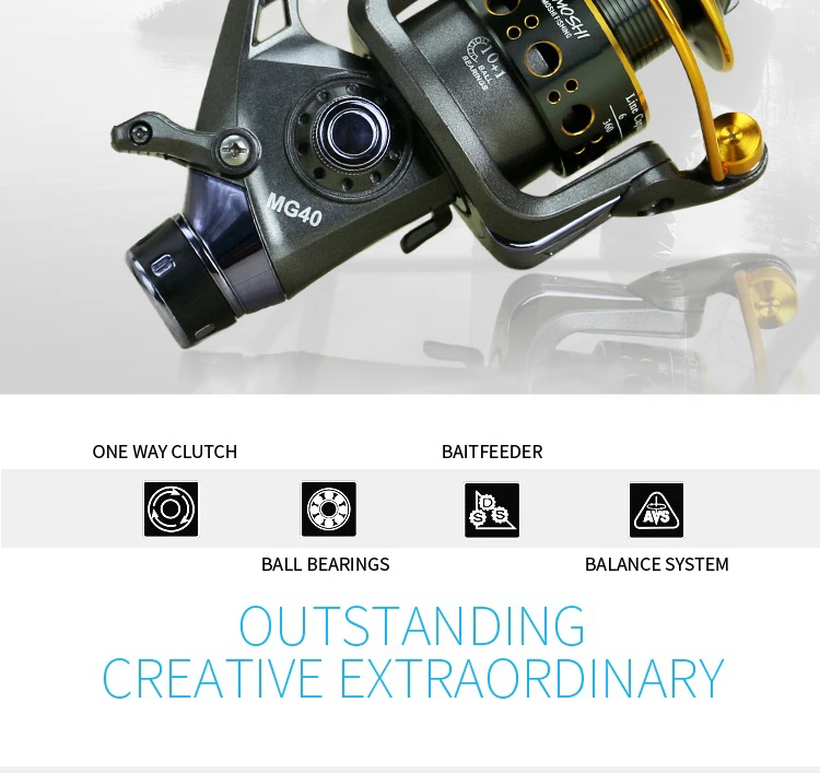 Особенности:1,10 + 1 прецизионный шариковый bearings2.Bait runner reel3.Machined aluminum spool4.Instant anti-reverse5.Power привод оснащен для высокой прочности 6.coiled bail spring7.S-Кривая колебательная система для очень хорошей линии winding8.Right/левый взаимозаменяемый руль 9.computer сбалансированный Высокопрочный пластикИнформация о продукте:MG30 | Вес: 320g | Шестерни передаточное число: 5,0: 1 | Максимальная сила натяжения: 8 кг | Линия Ёмкость (мм-М): 0,25-195MG40 | Вес: 340g | Шестерни размерное соотношение: 5,0: 1 | Максимальное сопротивление: 10 кг | Мощность линии (мм-М): 0,25-215MG50 | Вес: 455 г | Передаточное отношение: 5,2: 1 | Максимальное сопротивление: 12 кг | Мощность линии (мм-М): 0,35-180MG60 | Вес: 475 г | Передаточное отношение: 5,2: 1 | Максимальное сопротивление: 16 кг | Линейная Емкость (мм-М): 0,35-220
