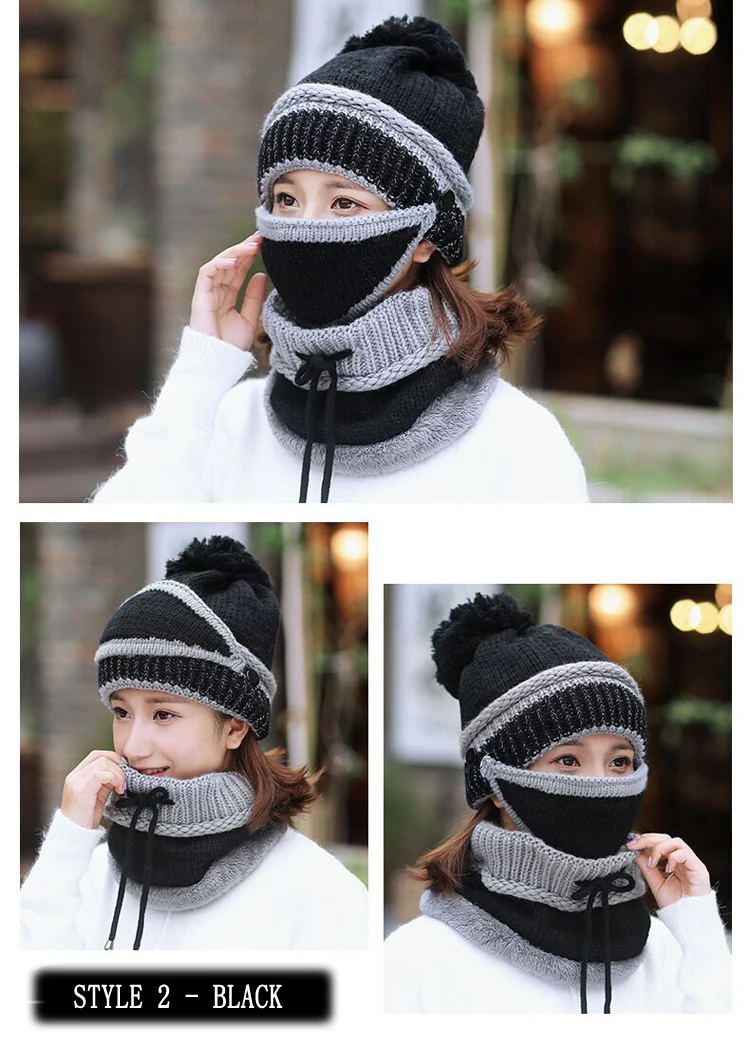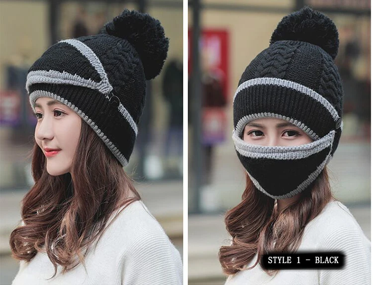 Женские противотуманные шапки для девушек, зимние облегающие шапки, бархатный толстый нагрудник, маска, шапочки, шапочка, женская шапочка, теплая вязаная шерстяная шапка