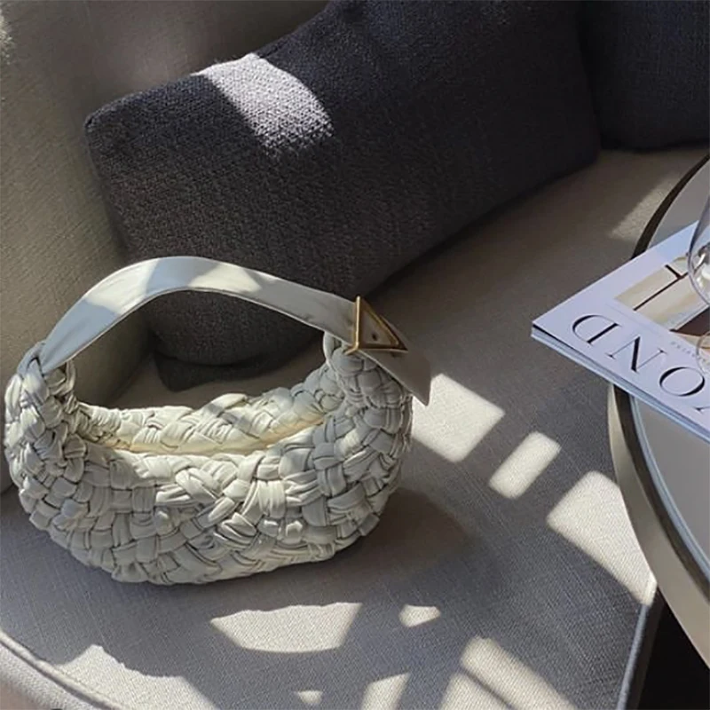 Новинка, плетеная дамская сумочка с узлом, женская сумка под плечо, новинка 2020, Модная Портативная сумка, мягкая кожаная круассаны, сумка-полумесяц, Повседневная