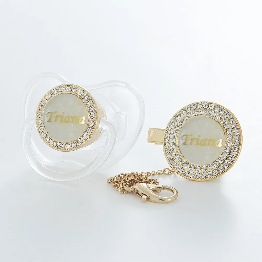 Миокар под заказ с любым именем, полностью прозрачная жемчужная соска и Соска с зажимом, не содержит Бисфенол А, манекен с блестками, уникальный подарок, детский душ, ПАВ