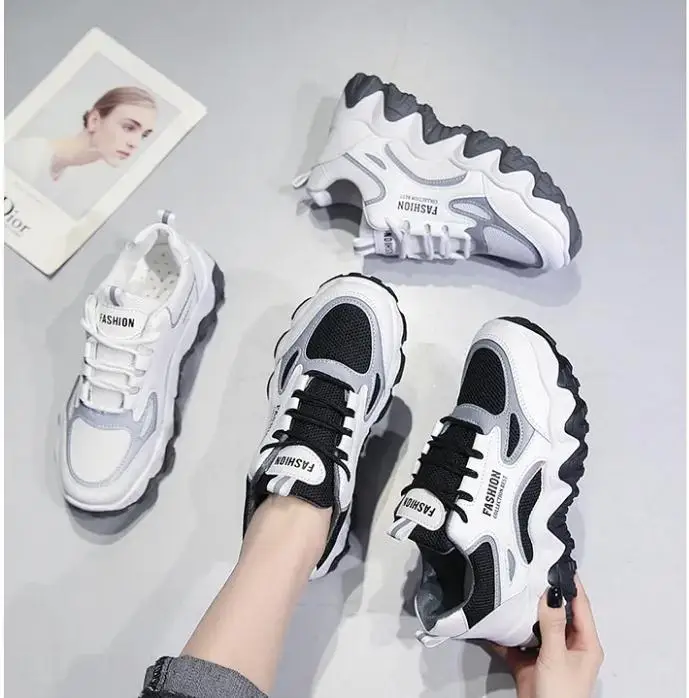 Женские массивные кроссовки; Вулканизированная обувь; Модная новинка в Корейском стиле; Женская повседневная обувь на толстой платформе; Цвет черный, белый