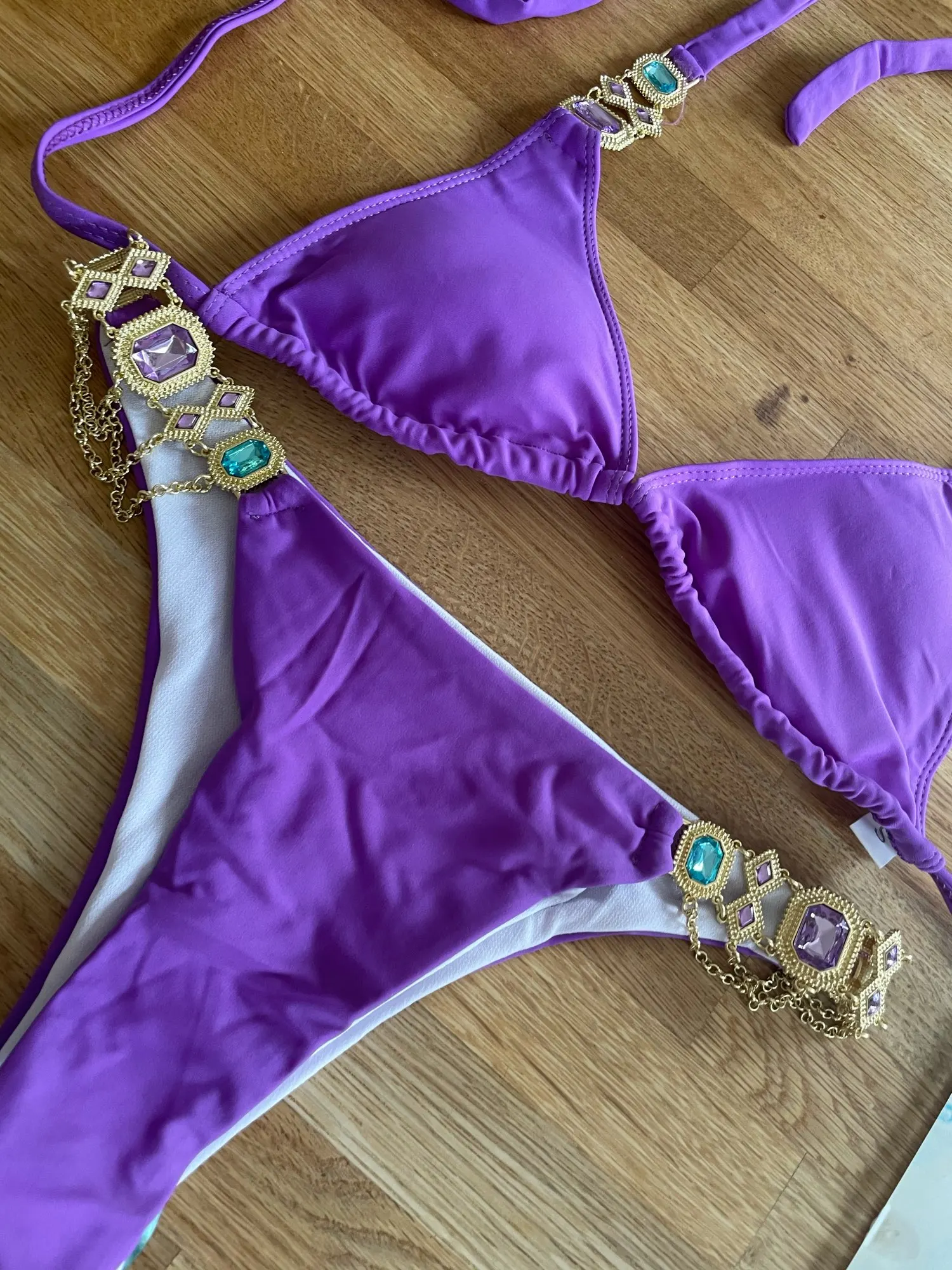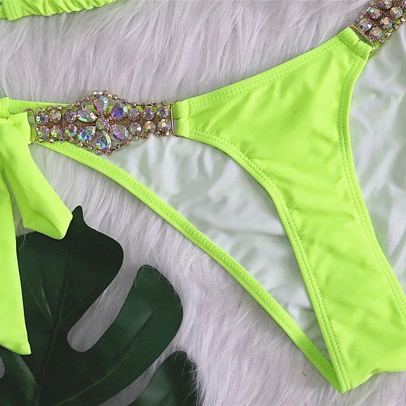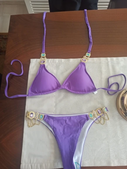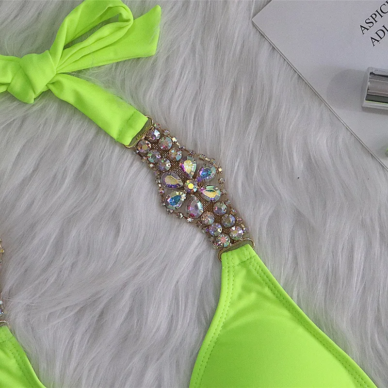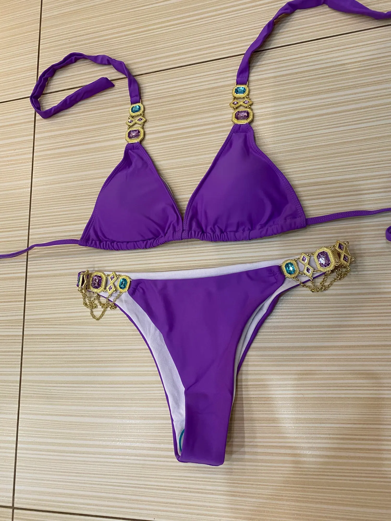 Новинка, Сексуальное Фиолетовое бикини с лямкой через шею и кристаллами, 2022, женский купальник, женский купальник, комплект бикини стразы, Бразильский купальный костюм