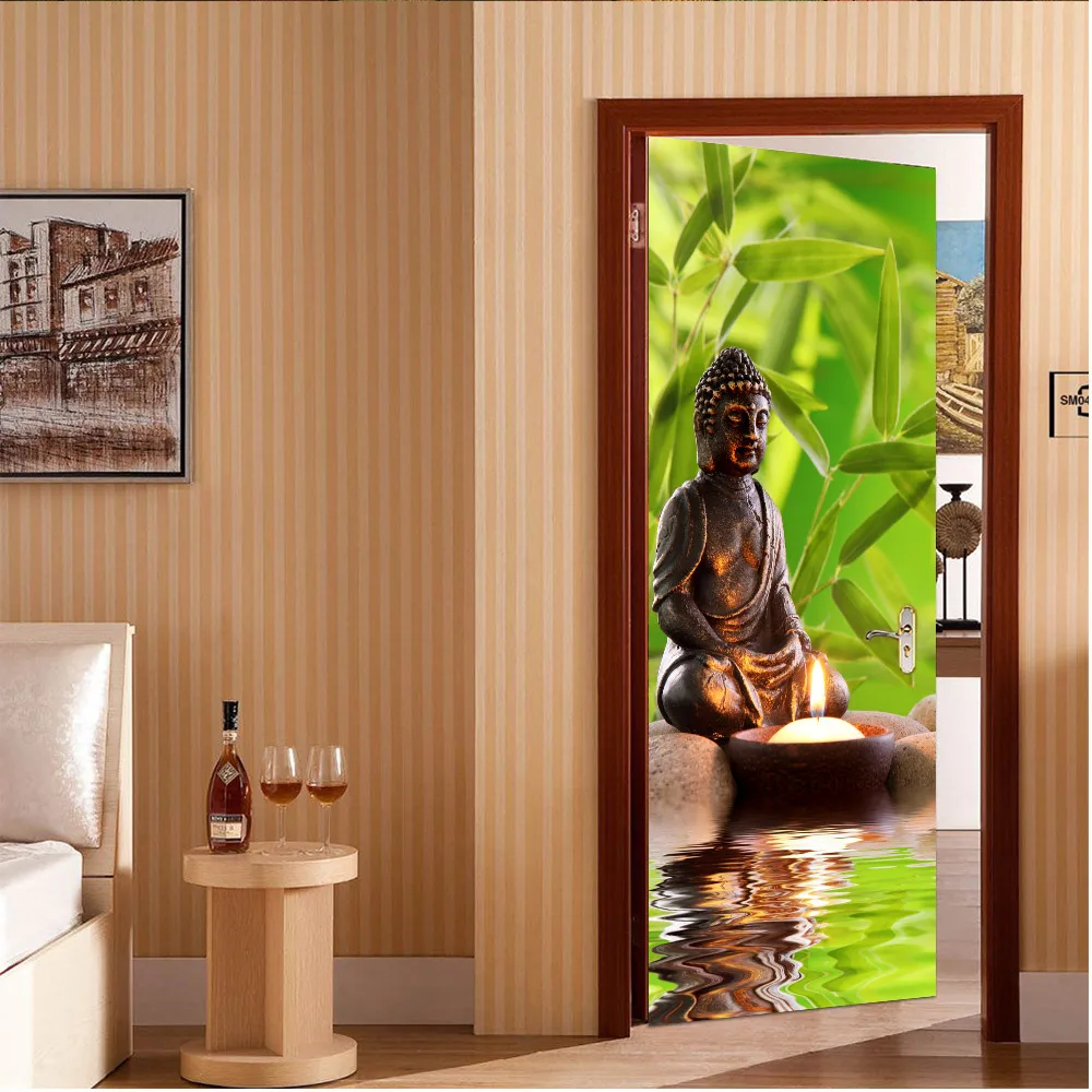 Дверная наклейка креативная ПВХ водостойкая реконструированная статуя Будды Настенная самоклеящаяся печать картина DIY домашний декор обои наклейка