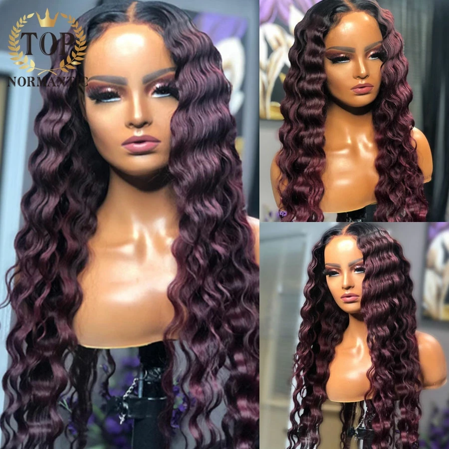 Topnormantic Ombre Цвет бразильский Remy парик из человеческих волос предварительно выщипанные волосы 13x 4 кружевные фронтальные глубокие волнистые парики для женщин