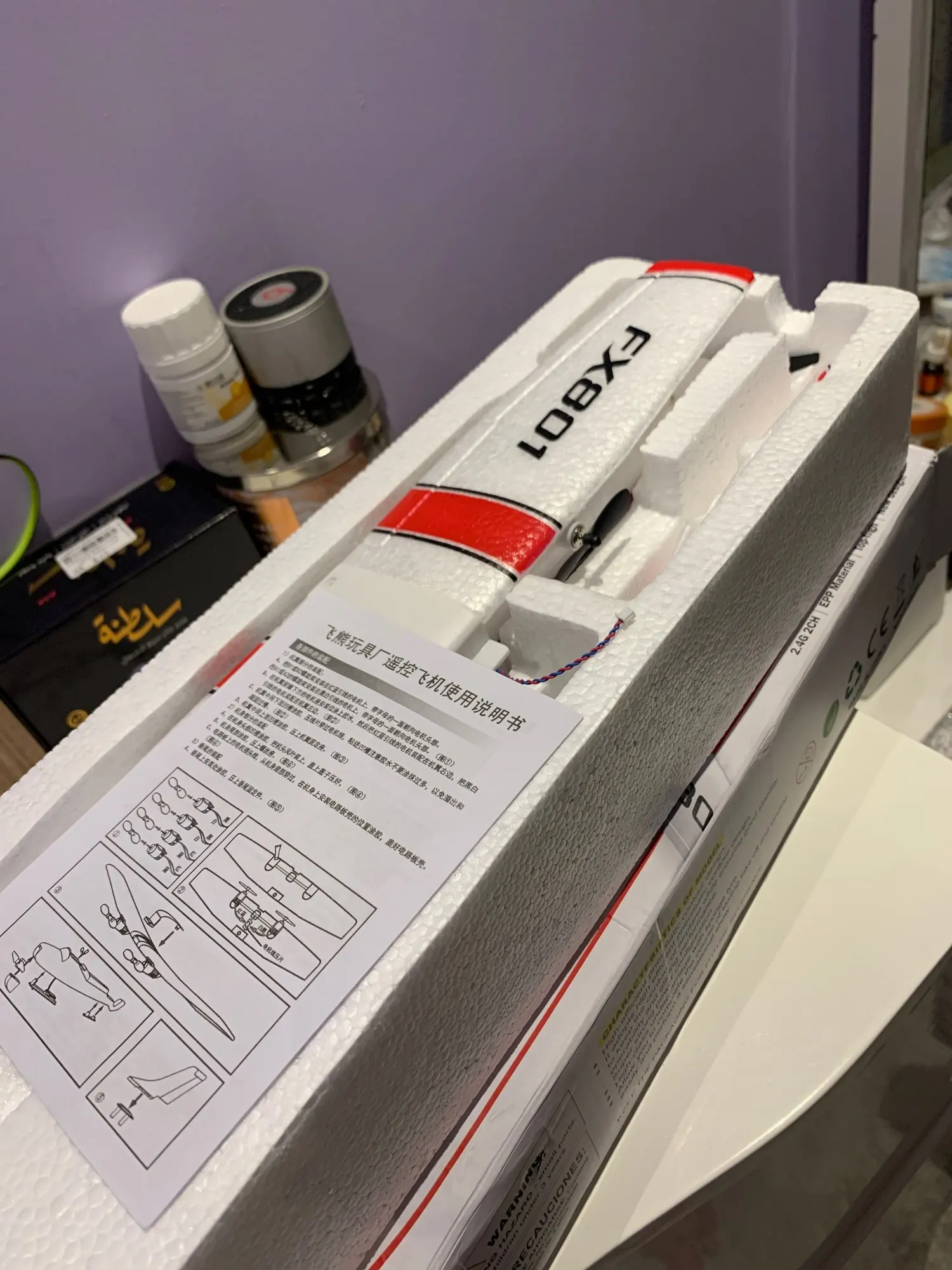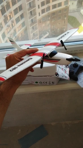 Сама коробка пришла поврежденной но в коробке достаточно пинормласта и самолет не поврежден, с управлением еще разбираемся, за щет того что самелет легкий нужно запускать в безветренную погодуб но игрушка прикольная!