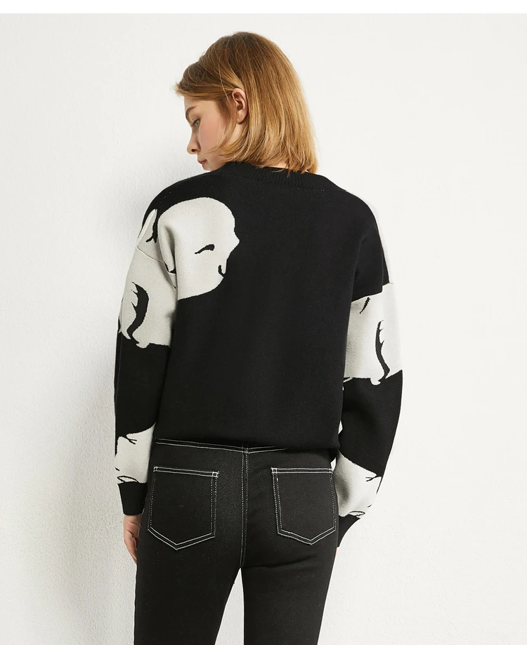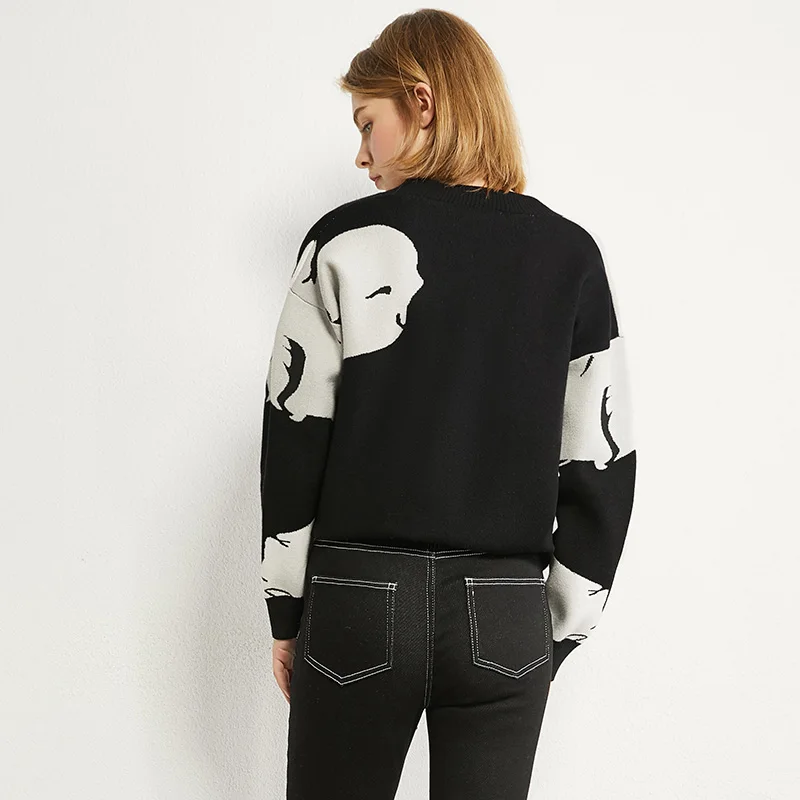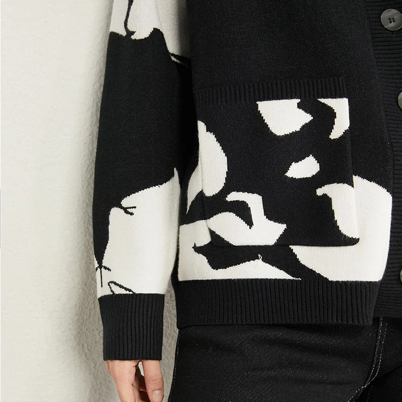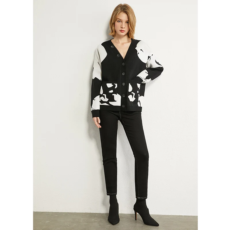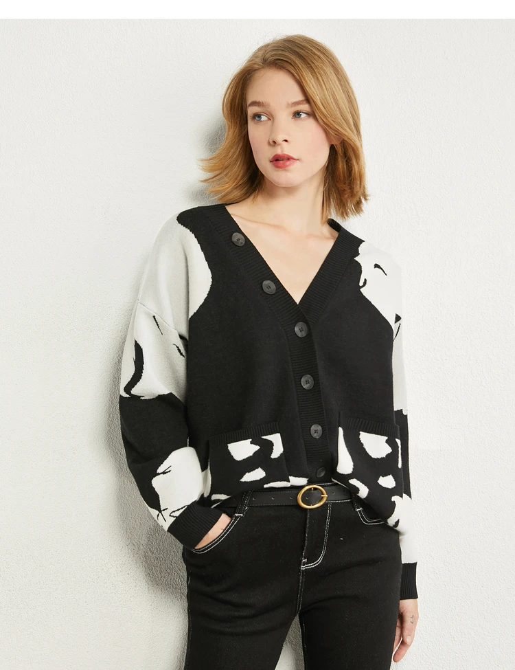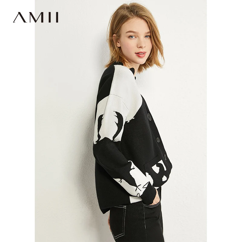 AMII минимализм осенний Модный женский свитер Топы с v-образным вырезом из кроличьей шерсти свободный контрастный свитер женский кардиган Топы 12070374