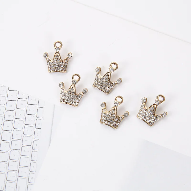 10 шт.упак. корона с украшением в виде кристаллов Подвески из метала золотого цвета Подвески ручной Подвески для DIY серьги браслет ювелирных изделий