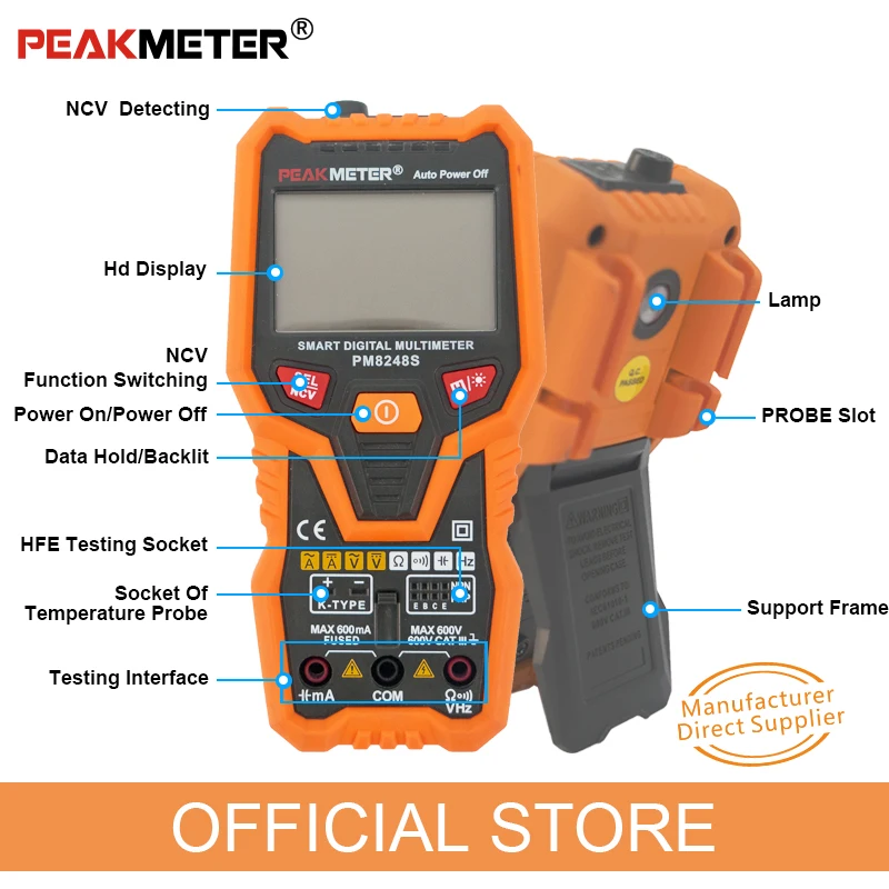 PM8248S умный автоматический Профессиональный цифровой мультиметр Вольтметр с NCV частотой барграф температурный транзистор тест Батарея в комплект не входит