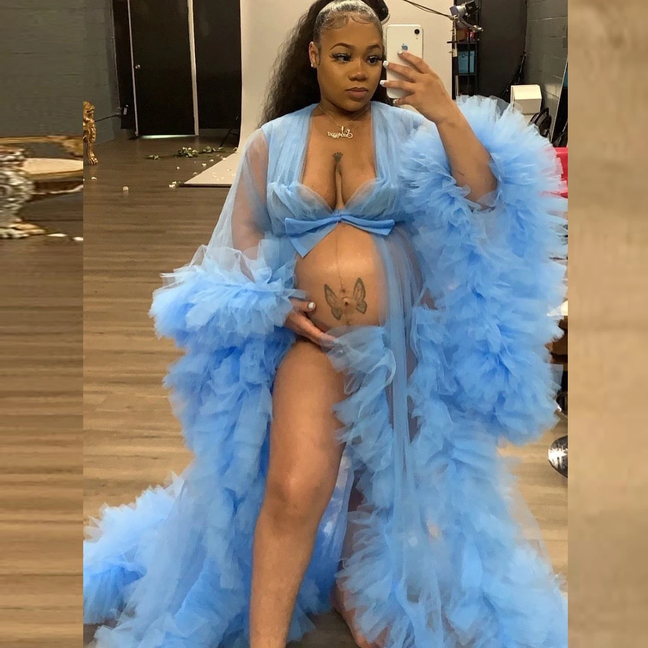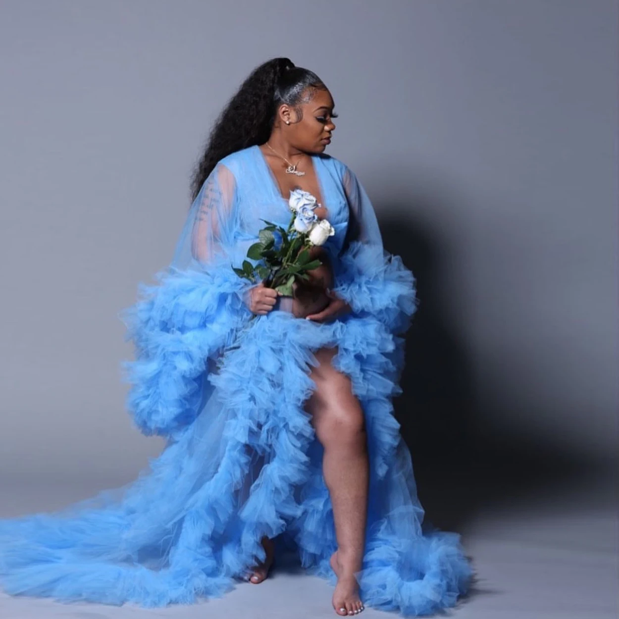 Свадебные пушистые тюлевые халаты для беременных на заказ небесно-г...