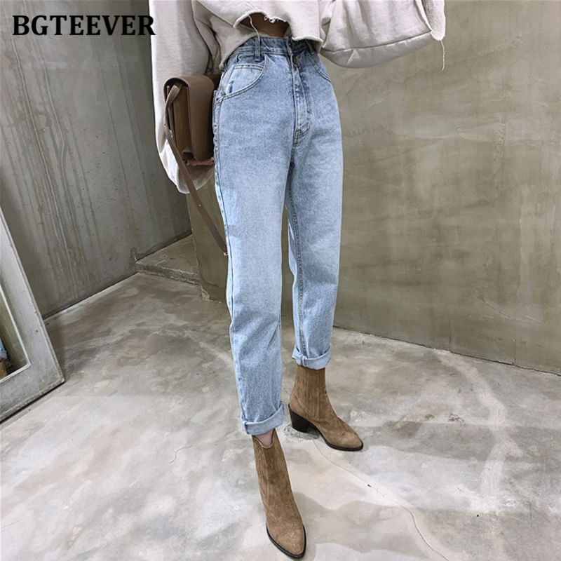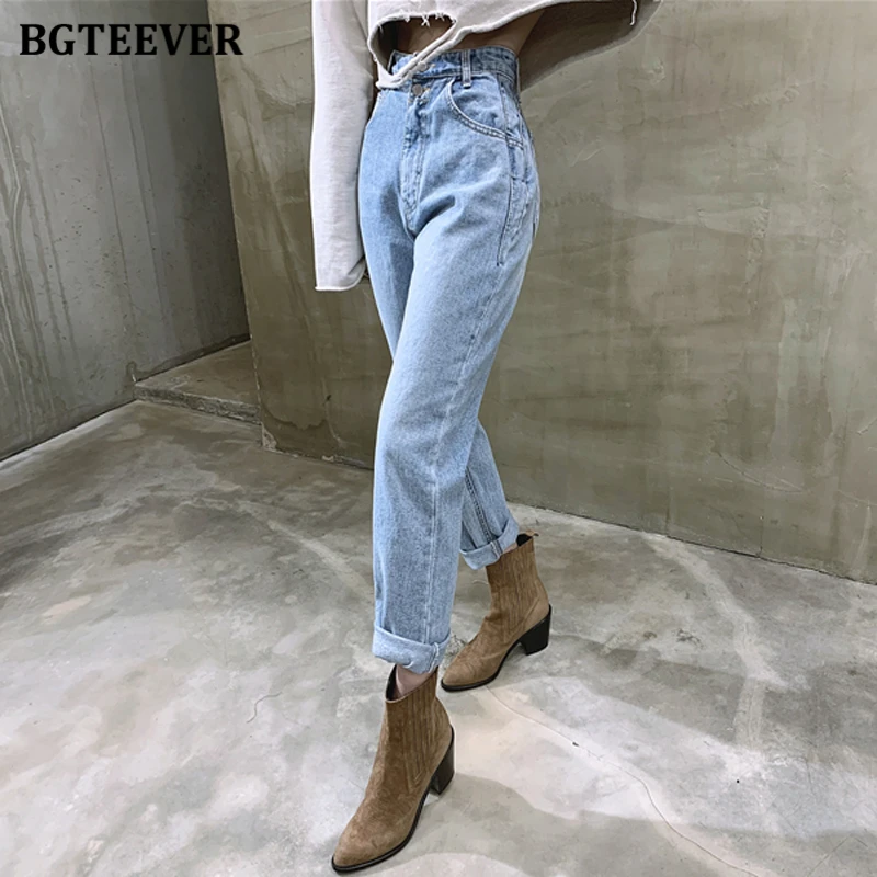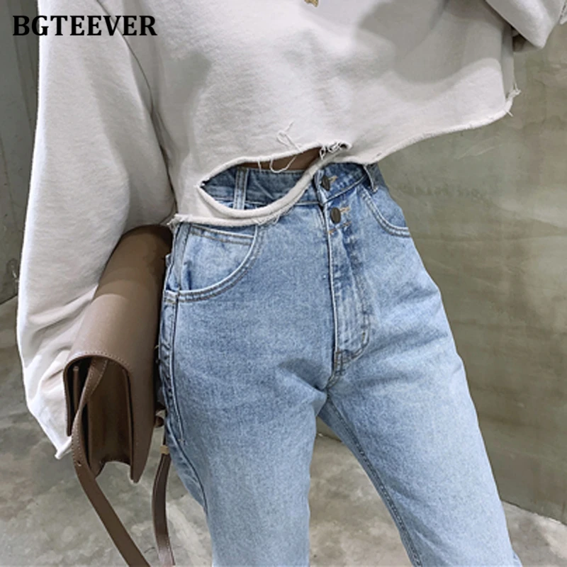 Женские джинсы-шаровары BGTEEVER, синие винтажные свободные джинсы с двойной пуговицей и бахромой, с высокой талией, лето-осень 2020