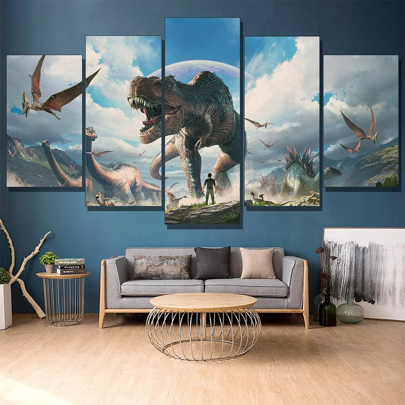 Картина на холсте, домашний декор, настенная художественная рама, 5 шт., рисунки динозавров парка Юрского периода для гостиной, HD-печать, плакат с животными