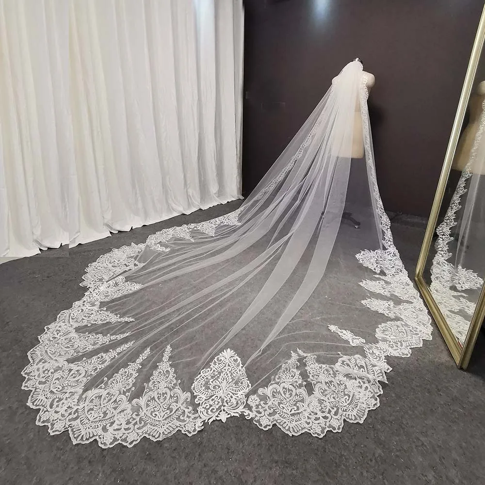 Фата свадебная с гребнем, роскошная длинная кружевная в стиле ретро, свадебные аксессуары, 3,5 метра, реальные фотографии