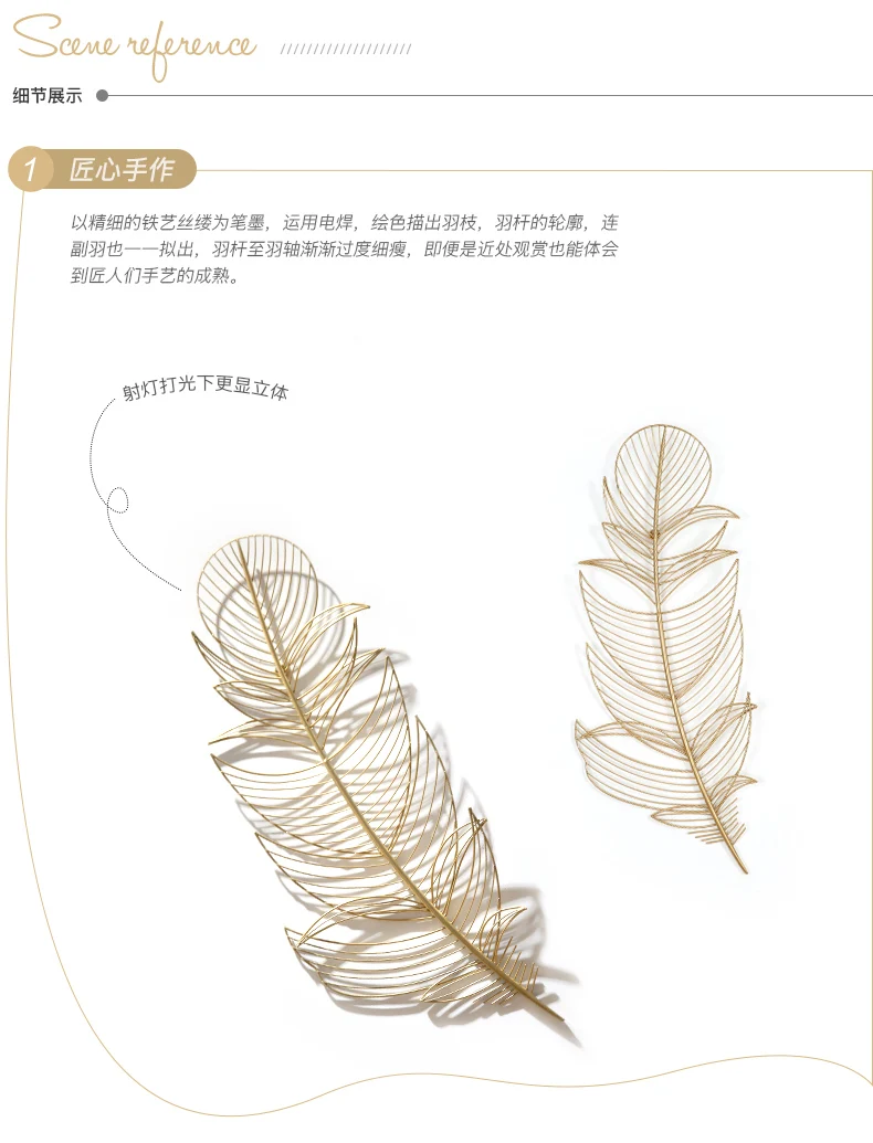 Средиземноморская гостиная ТВ фон украшение стены творческий кулон Золотое перо ручной работы Кованое железо домашний декор