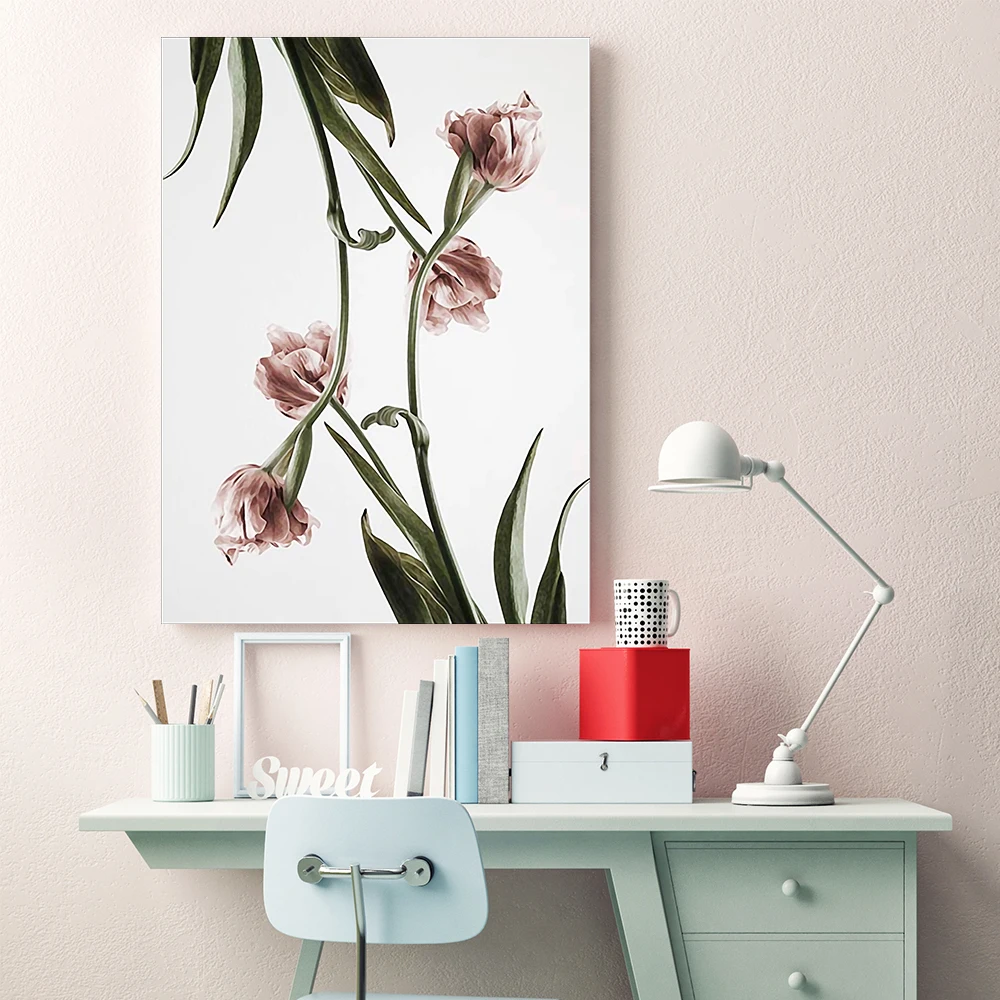Скандинавский Романтический постер с цветами, Картина на холсте, настенные художественные картины для гостиной, HD плакаты и принты, розовый, зеленый, домашний декор