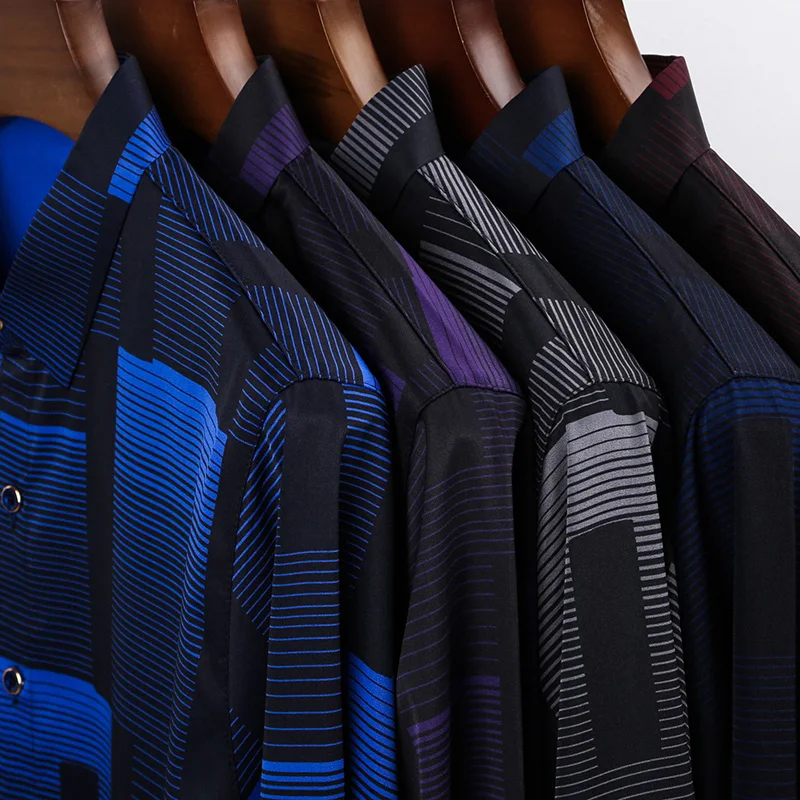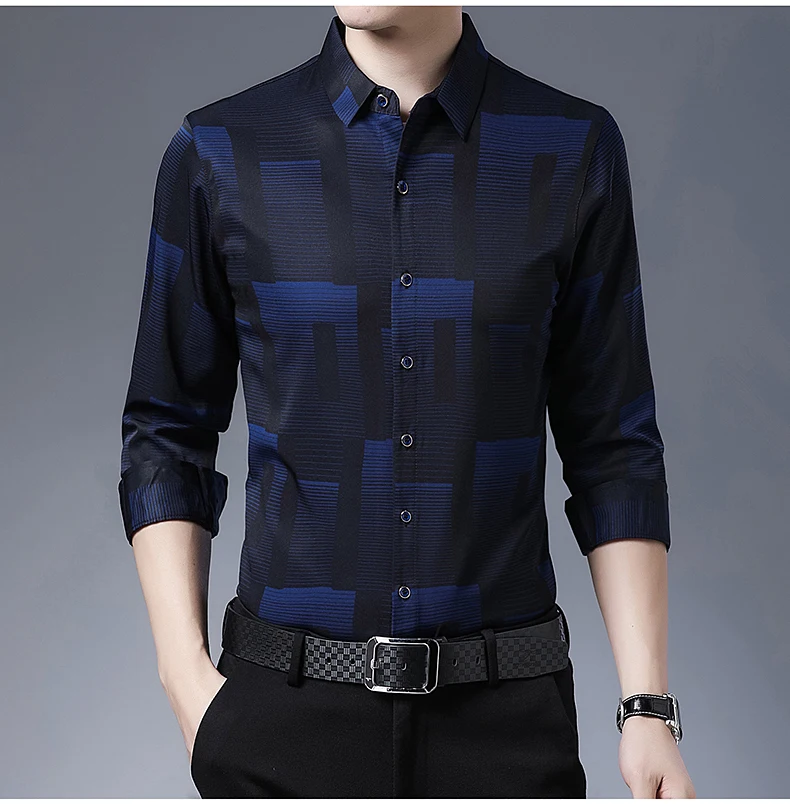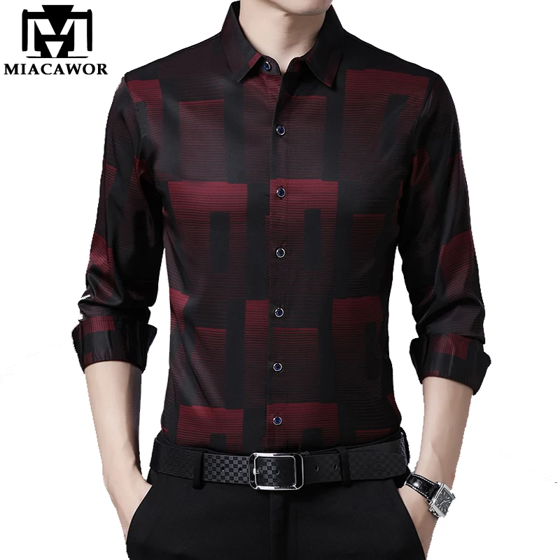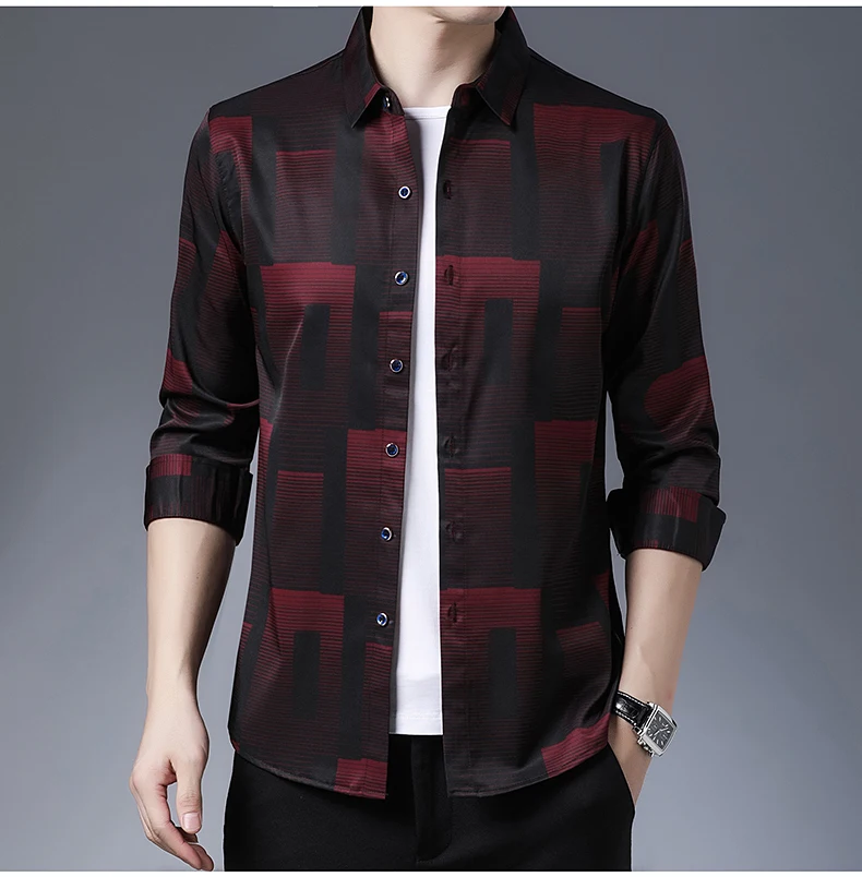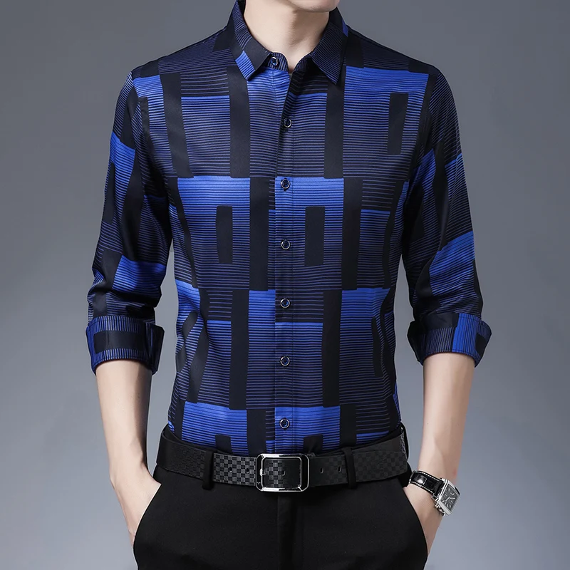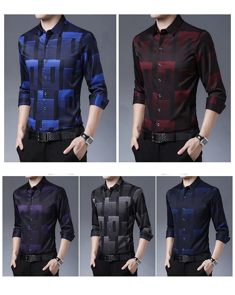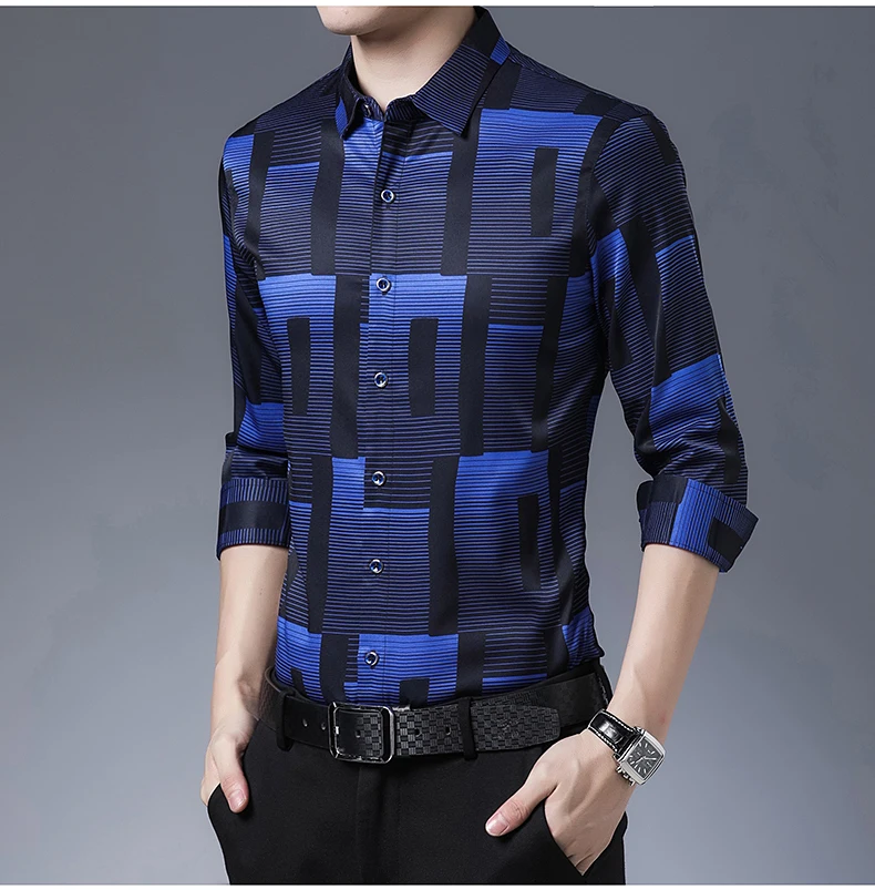 Рубашка мужская, шелковая, хлопковая, с длинным рукавом, приталенная, весна-осень, C688