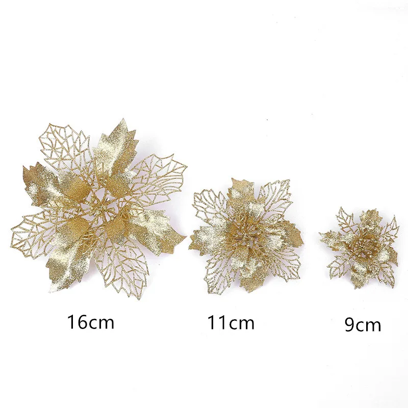 16 см блестящие цветы для рождественской елки, полый искусственный ...