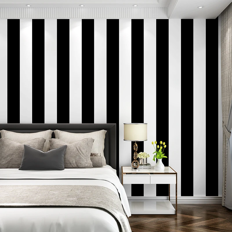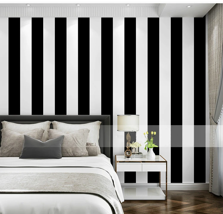 Классическая Серая черная Водонепроницаемая настенная бумага из ПВХ, рулон глянцевой белой и черной вертикальной полосы, Настенная бумага для гостиной