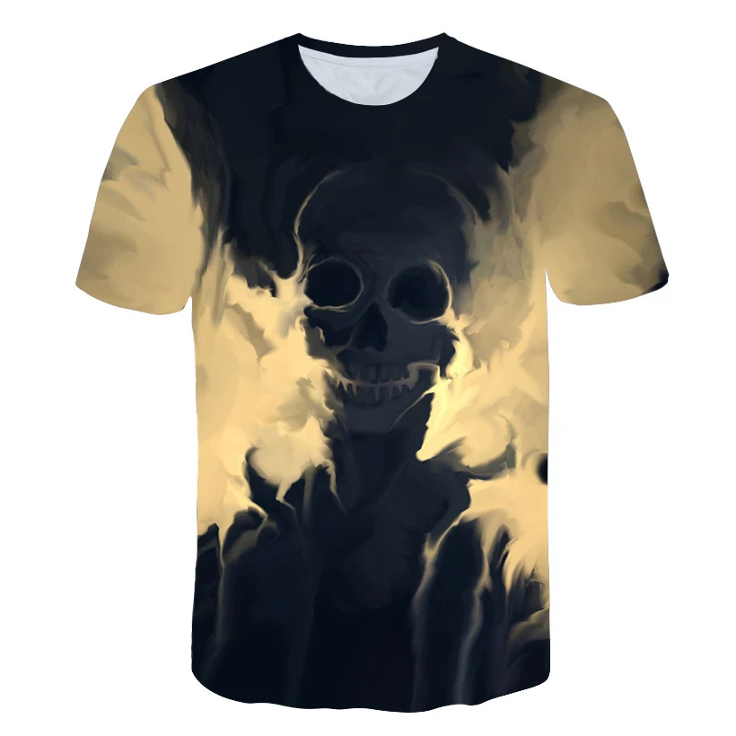 Мужская футболка в стиле рок, летняя дышащая футболка с 3D-принтом черепа, круглым вырезом, короткими рукавами, 2020