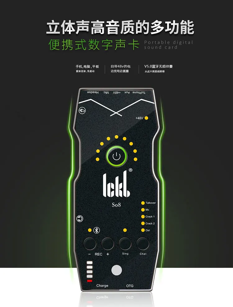 Профессиональная звуковая карта icck SO8 Track USB для певцов.